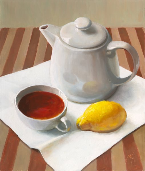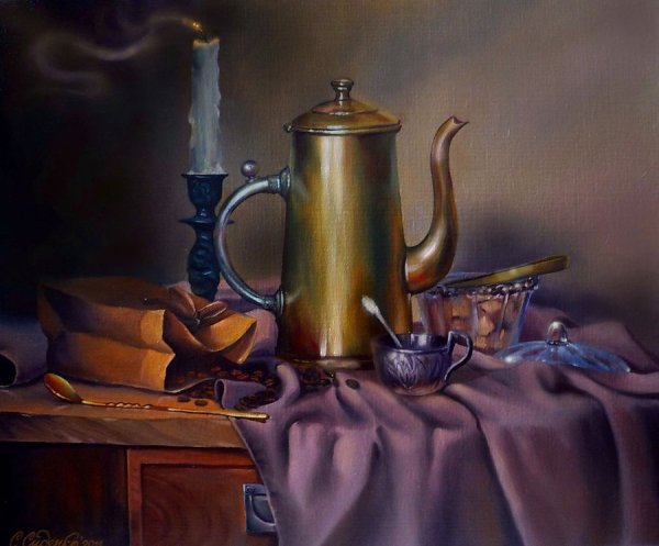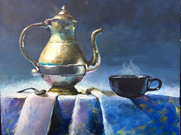 Наш натюрморт "Кружка и чайник" - это изящная композиция, которая олицетворяет уют и домашний комфорт. Очаровательная кружка с изображением ярких цветов и стильный чайник в классическом дизайне создают гармоничное сочетание на нашей картине. Используя мастерство и талант художника, каждая деталь формирует единую атмосферу спокойствия и благополучия. Наш натюрморт "Кружка и чайник" станет прекрасным украшением вашего интерьера, придаст ему элегантность и утонченность. Эта картина станет отличным подарком для любителей чая и искусства, оставив незабываемые впечатления и создав особую атмосферу в вашем доме.