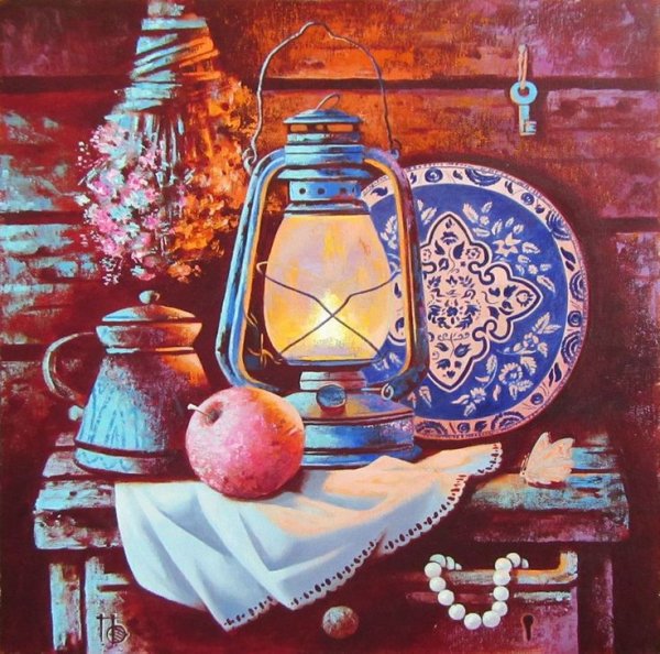 Натюрморт с лампой из куприянового металла – это удивительное произведение искусства, которое притягивает взгляды своей элегантностью и особым шармом. Лампа, выполненная из благородного куприя, придает этому натюрморту особую глубину и теплоту. Ее нежное свечение создает атмосферу уюта и спокойствия, заставляя нас забыть о суете и погрузиться в мир тихой контемпляции. Золотистый оттенок металла, сочетающийся с другими элементами натюрморта, придает ему особую изысканность и роскошь. Композиция натюрморта с лампой из куприянового металла станет прекрасным украшением для любого интерьера, добавляя ему неповторимость и индивидуальность.