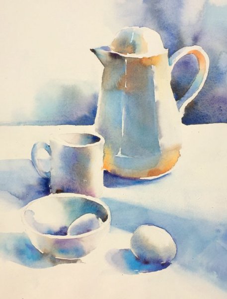 Натюрморт в холодных тонах акварелью - это уникальное произведение искусства, которое восхищает своей нежностью и изяществом. Холодные тона создают особую атмосферу, придающую работе спокойствие и гармонию. Акварельная техника позволяет передать все оттенки и переходы цветов с особой чуткостью и мягкостью. Каждая капля краски на бумаге превращается в маленький шедевр, который оживает перед глазами зрителя и погружает его в мир тонких эмоций и глубоких ощущений. Натюрморт в холодных тонах акварелью является прекрасным дополнением к интерьеру и станет настоящим украшением любого пространства.