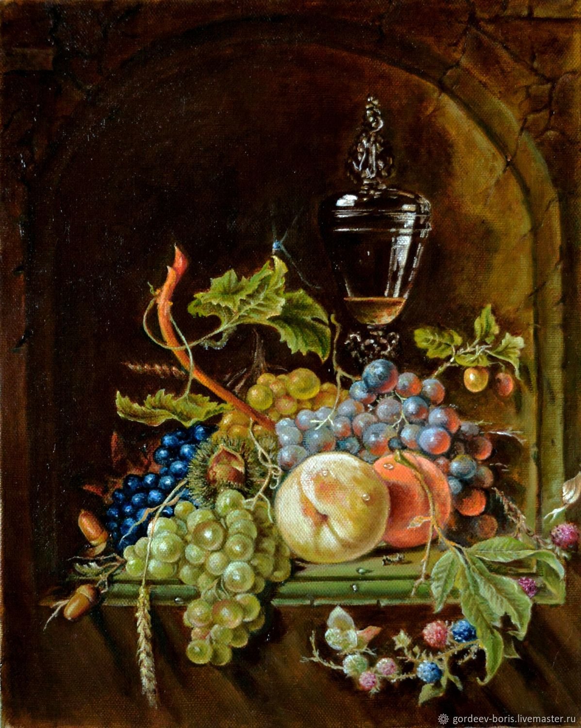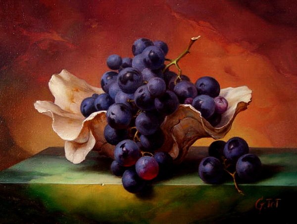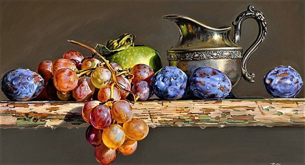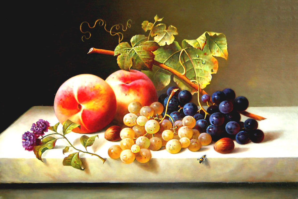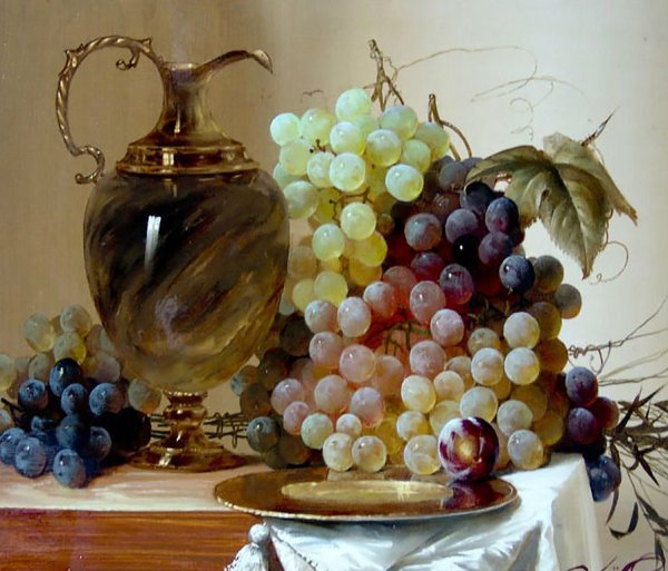 Андреас Лач - талантливый художник, чья работа пронизана эстетикой и красотой природы. В его натюрморте с виноградом он мастерски передает всю изящность и пышность этого фрукта. Каждая ягода выглядит настолько реалистично, что словно можешь почувствовать их сочность и сладость. Композиция полна жизни и движения, создавая ощущение, будто виноград только что был сорван с лозы. Работа Андреаса Лача поражает своей детализацией и мастерством исполнения, заставляя зрителя полностью погрузиться в мир натюрморта и насладиться его красотой.