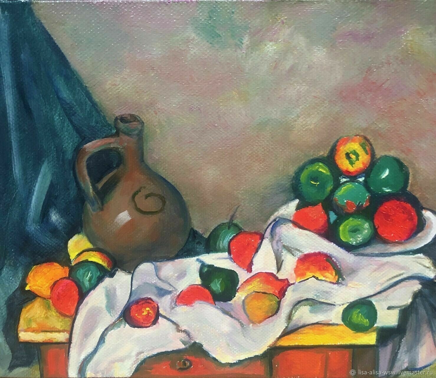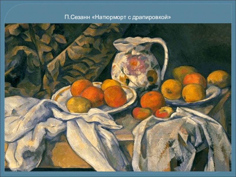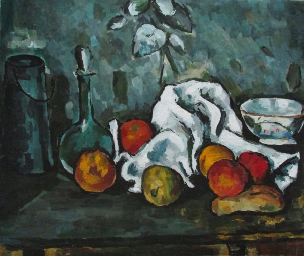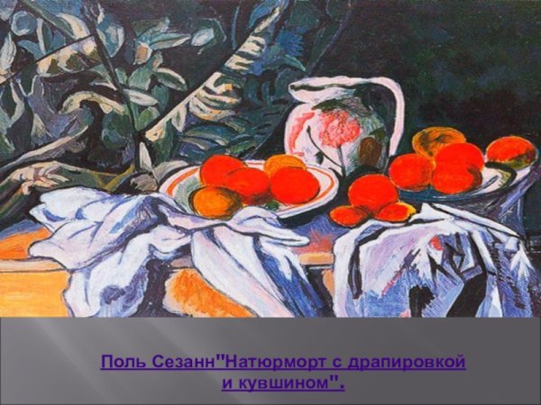 Натюрморт с кувшином и драпировкой - это одна из известных работ французского художника Поля Сезанна. В этой живописи он исследует тему натюрморта, создавая образы предметов, оживленных светом и цветом. Кувшин и драпировка являются основными элементами композиции, которые объединяются в гармоничное целое. В работе присутствует игра света и теней, демонстрирующая мастерство Сезанна в передаче объемности и текстуры. Он использует мягкие кистевые штрихи и насыщенные оттенки, чтобы передать настроение и эмоции. Этот натюрморт приковывает взгляд зрителя своей простотой и в то же время глубиной смысла.