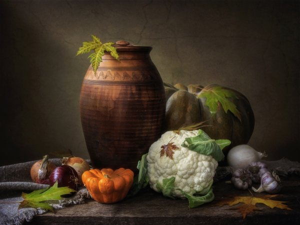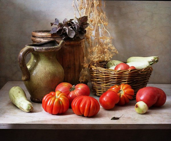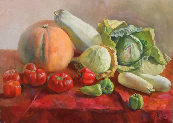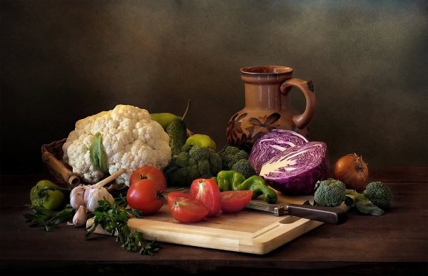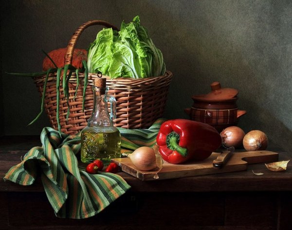 Натюрморт овощной - это картина, на которой изображены различные овощи, расставленные с особой гармонией и композицией. В таком натюрморте можно увидеть свежесть и яркость цветов овощей, их разнообразие и природную красоту. Каждый овощ на этой картине имеет свою форму, текстуру и оттенок, что создает интересный визуальный эффект. Овощной натюрморт может быть отличным дополнением для интерьера кухни или столовой, добавив в них нотку свежести и жизнерадостности. Это идеальное решение для людей, предпочитающих здоровый образ жизни и ценящих естественность и простоту. Натюрморт овощной - это не только красивое искусство, но и напоминание о важности здорового питания и баланса в рационе.
