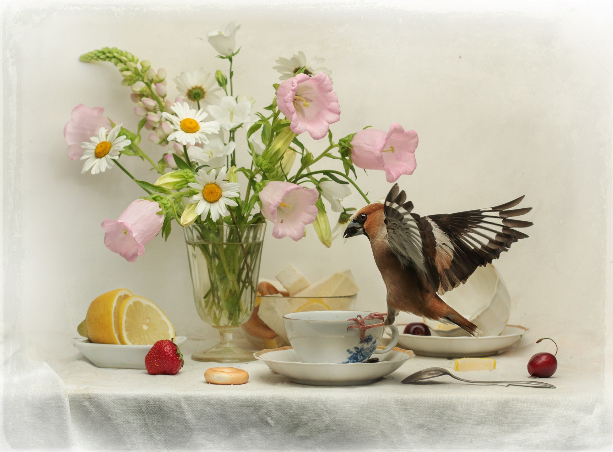 Натюрморт с птицей - это произведение искусства, которое захватывает взгляд и переносит нас в мир природы. В центре внимания находится птица, олицетворяющая свободу и красоту живого мира. Ее присутствие создает атмосферу гармонии и покоя, дополняя композицию различными элементами: цветами, фруктами, предметами быта. Яркие краски и яркая игра света добавляют этому натюрморту особую энергию и жизненность. Натюрморт с птицей - это истинное творческое произведение, которое способно пробудить в нас чувство восторга и восхищения перед прекрасной природой.
