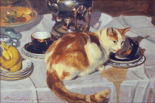 Натюрморт с кошкой – произведение испанского художника Жана Жовено, которое вписывается в его известный стиль искусства. Эта картина захватывает взгляд своей утонченной композицией и детально проработанными объектами. В центре внимания находится прекрасная кошка, изображенная с достоверностью и натуральностью, что создает ощущение ее живости и легкости движения. Она окружена различными предметами, такими как вазы с цветами, фрукты и другие элементы, которые придают этому произведению гармонию и эстетическую привлекательность. Картина Натюрморт с кошкой является одним из ярких примеров мастерства и таланта Жана Жовено, который способен передать красоту и изящество природы в своих произведениях.