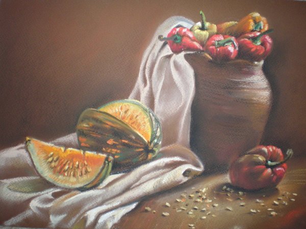 Натюрморт пастелью на черном фоне - это изысканное и элегантное произведение искусства, которое привлекает внимание своей глубиной и контрастностью. Черный фон создает идеальную платформу для ярких и насыщенных красок пастели, позволяя им выделяться и раскрываться во всей своей красоте. Композиция натюрморта завораживает своим тщательно подобранным выбором объектов: цветочные букеты, фрукты, предметы интерьера или даже простые повседневные предметы. Игра света и тени, отражения и текстуры создают глубокий пластический эффект, придают ощущение реальности и объема. Натюрморт пастелью на черном фоне - это не только проявление художественного мастерства, но и возможность увидеть привычные предметы в совершенно новом свете, окунуться в атмосферу загадочности и красоты.