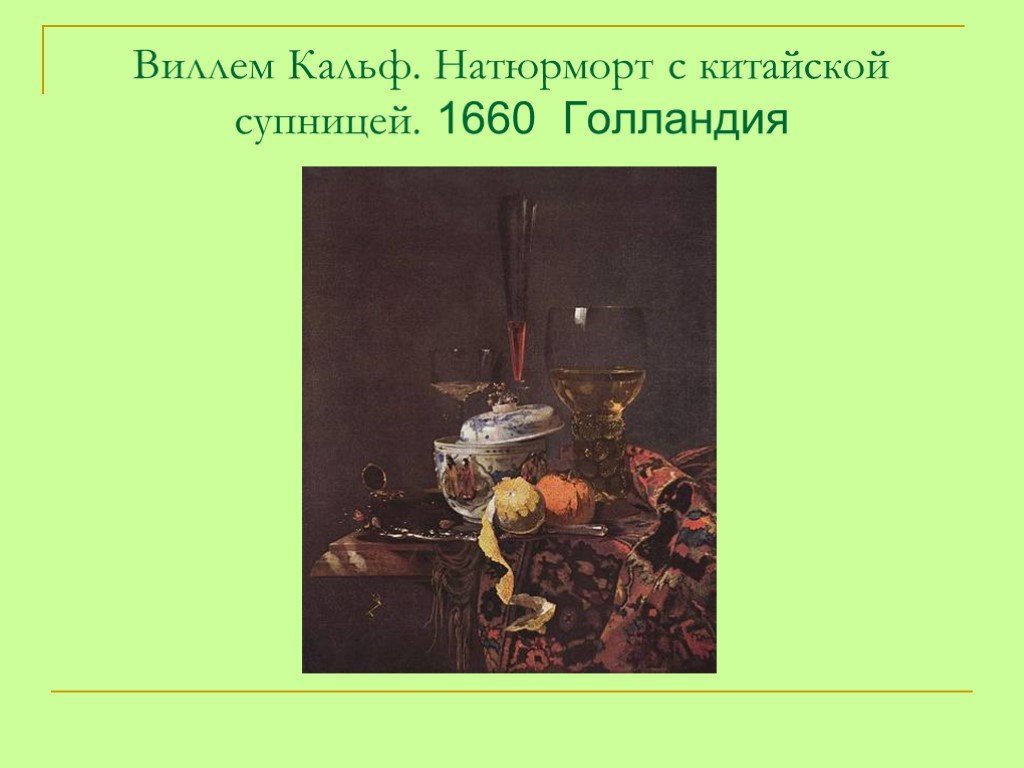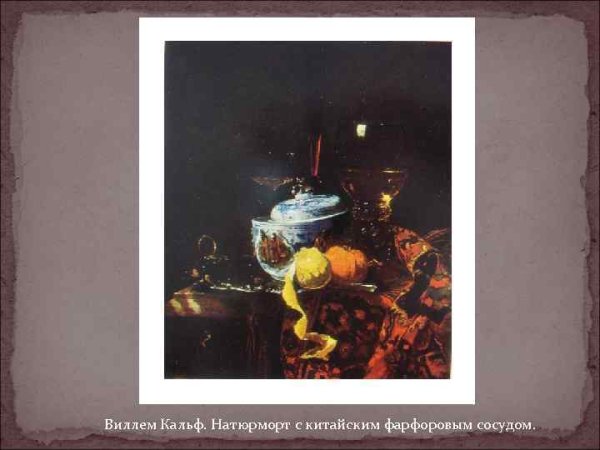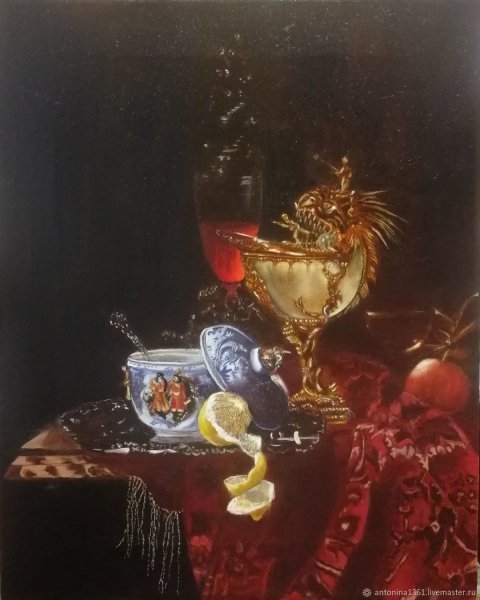 Натюрморт с китайской супницей Виллема Кальфа – это произведение искусства, которое восхищает своим изяществом и художественным мастерством. В этой картины автор умело сочетает различные элементы: стильную китайскую супницу, нежно расположенные на ней цветы и фрукты, а также пространство и свет. Характерная для Кальфа палитра и реалистичное изображение делают этот натюрморт особенно живописным и притягательным. Основные цвета в произведении - пастельные оттенки, что придает ему легкость и элегантность. Натюрморт с китайской супницей Виллема Кальфа является прекрасным примером классического искусства, которое поражает своей красотой и гармонией.