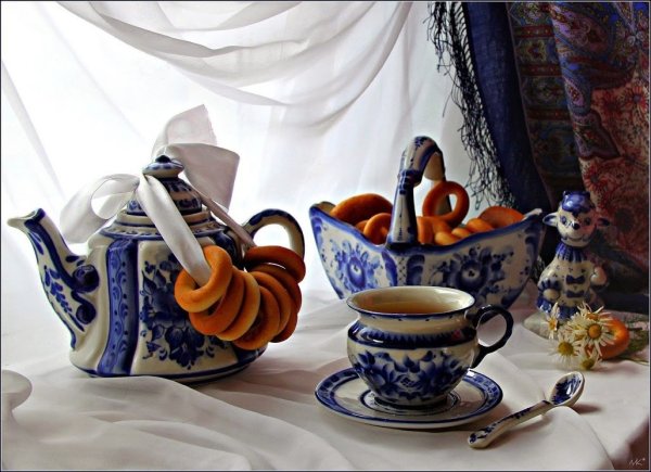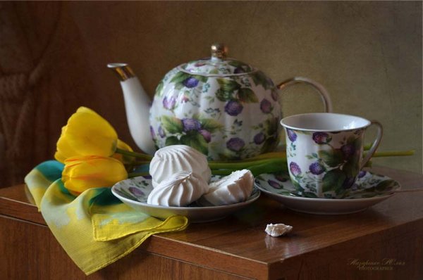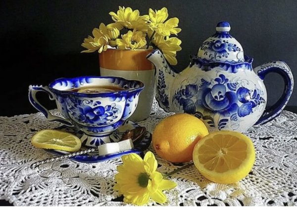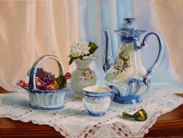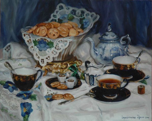 Чайный сервиз натюрморт - это элегантное и изысканное сочетание предметов, создающих уютную и роскошную атмосферу в вашем доме. Каждая деталь сервиза, начиная от чашек и блюдец до чайника и сахарницы, тщательно подобрана и выглядит как настоящее произведение искусства. Используя данный сервиз, вы сможете порадовать себя и своих гостей нежными и ароматными чаепитиями, ощущая при этом особую атмосферу и стильность. Независимо от того, проводите ли вы чаепитие в одиночестве или в компании, чайный сервиз натюрморт станет прекрасным дополнением к вашему интерьеру и подарит вам моменты наслаждения и удовольствия. Он позволит вам окунуться в мир традиций и индивидуальности, создавая уникальную атмосферу и позволяя забыть о повседневной суете.