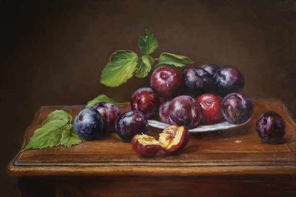 Натюрморт сливы - это художественная композиция, в которой главной темой являются сочные и спелые сливы. Это изображение природного происхождения, которое захватывает красоту и нежность этих плодов. Натюрморт сливы может быть выполнен в различных стилях и техниках, от реалистичного до абстрактного, но всегда передает естественность и свежесть. Картина сливы может стать прекрасным украшением интерьера, добавив в него нотку природной гармонии и эстетического наслаждения. Она может также символизировать плодородие, богатство и изобилие. Натюрморт сливы - это не только художественное произведение, но и возможность насладиться красотой и даром природы.