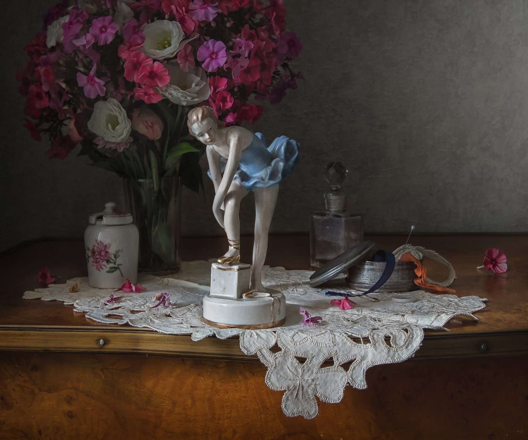Натюрморт с изображением балерины - это великолепное произведение искусства, которое захватывает воображение и переносит нас в мир грации и красоты. В этом натюрморте балерина изображена в изящной позе, с грациозно поднятой ногой и распущенными волосами, что придает ей особую элегантность и утонченность. Мастерство художника видно в каждой детали: от тонких линий и контуров, до ярких цветов и оттенков, создающих ощущение движения и живости. Это произведение искусства способно вдохновить и вызвать у зрителя множество эмоций, отражая красоту и атмосферу мира балета. Натюрморт с балериной станет прекрасным украшением интерьера и идеальным подарком для любителей искусства и танца.