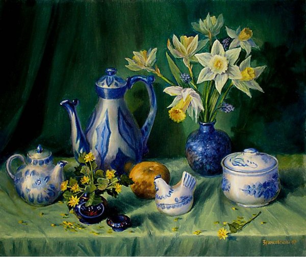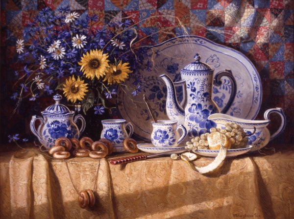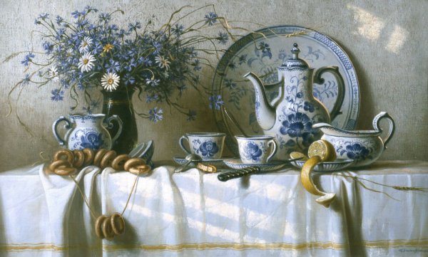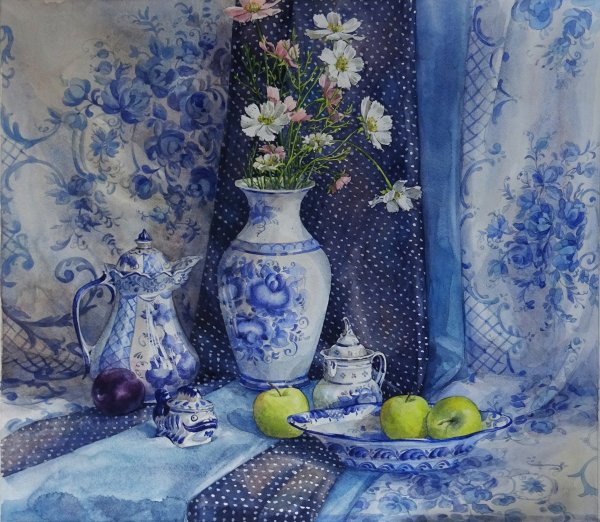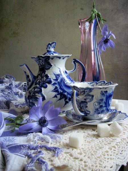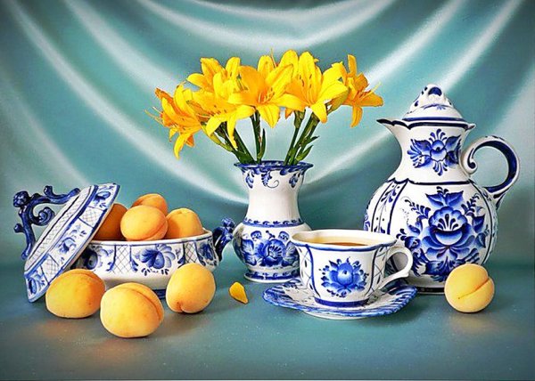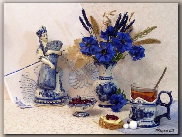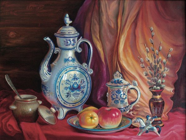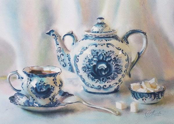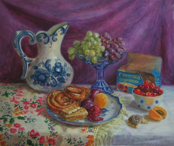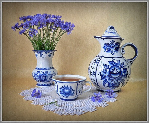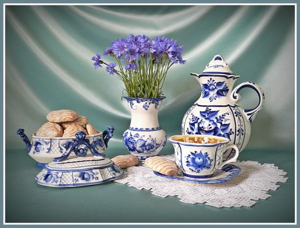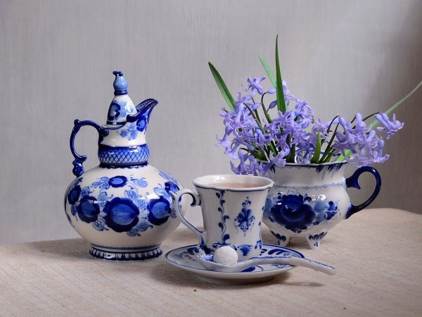 Натюрморт Гжель – это удивительное произведение искусства, которое сочетает в себе традиционный стиль русской глиняной посуды Гжель и живописные элементы натюрморта. Каждый элемент этого натюрморта выполнен с большим мастерством и вниманием к деталям, что создает ощущение живости и реалистичности. Яркая голубая расцветка Гжеля, украшенная изящными цветочными орнаментами, придают этому натюрморту особую элегантность и очарование. Расставленные на фоне белоснежной посуды разнообразные фрукты, цветы и предметы интерьера, создают гармоничную композицию, которая привлекает взгляд и вызывает положительные эмоции. Натюрморт Гжель – это не только художественное произведение, но и прекрасный элемент декора, который добавит изысканности и красоты в любой интерьер.