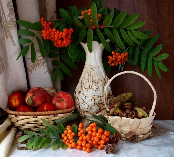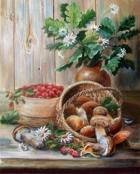 Натюрморт "Дары природы" - это произведение искусства, сделанное с использованием различных элементов природы. Этот натюрморт восхищает своей красотой и гармонией, передавая зрителю удивительное многообразие и изысканность природных форм и цветов. В композиции присутствуют свежие фрукты, овощи, цветы или другие растения, которые символизируют богатство и изобилие. Каждый элемент натюрморта тщательно подобран и расположен, чтобы создать эффект естественной красоты и гармонии. Этот натюрморт не только вызывает восхищение своей эстетической ценностью, но и напоминает о важности сохранения и уважения к природе и ее бесценным дарам.