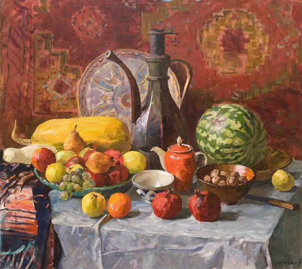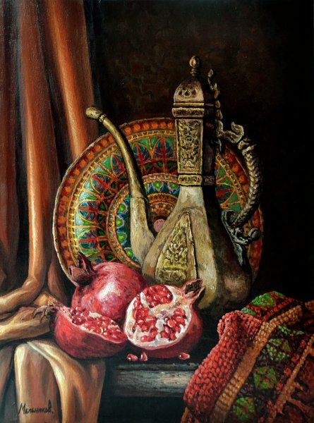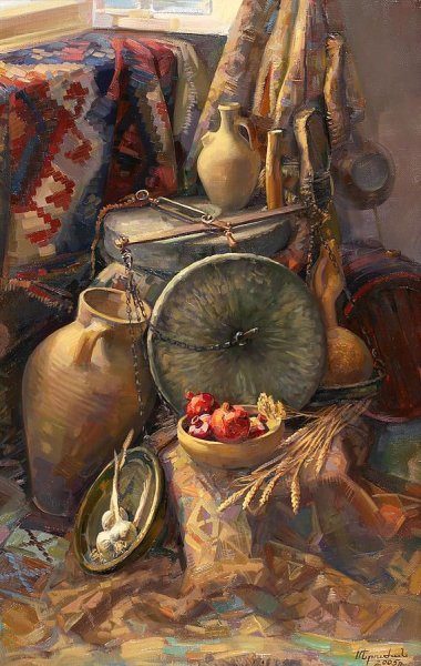 Адыгейский натюрморт - это уникальное художественное произведение, которое представляет собой яркую и красочную композицию из традиционных адыгейских элементов. Этот стиль живописи отличается своей особой эстетикой и глубоким символическим значением. В натюрморте можно увидеть изображения плодов, овощей, цветов, а также различных предметов, которые отражают культурное наследие и быт адыгейского народа. Он выделяется своей неповторимой цветовой гаммой и реалистичностью в передаче деталей. Адыгейский натюрморт привлекает внимание своей яркостью и нежной гармонией, создавая чувство радости и гармонии в сердце зрителя. Это произведение искусства является не только украшением интерьера, но и способом погрузиться в мир красоты и традиций адыгейского народа.