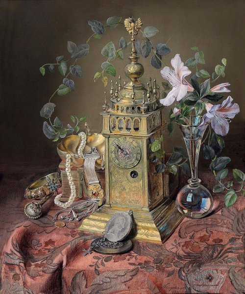 Старинный натюрморт - это произведение искусства, которое отражает красоту и элегантность прошлых времен. Он представляет собой изображение различных предметов, таких как фрукты, цветы, посуда и другие аксессуары, расположенные на старинной мебели или фоне. Эти натюрморты привлекают внимание своей тщательно проработанной детализацией, яркими цветами и уникальным стилем. Каждый элемент в натюрморте имеет свою собственную символическую значимость, создавая глубокий смысл и атмосферу. Старинные натюрморты являются не только украшением интерьера, но и памятником истории и культуры, передающим нам образ жизни и эстетику прошлых эпох.