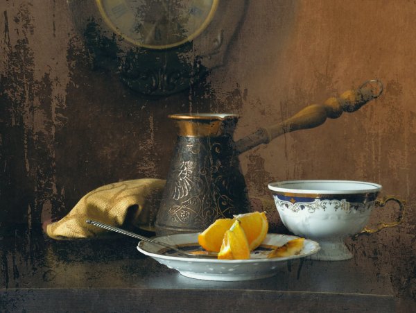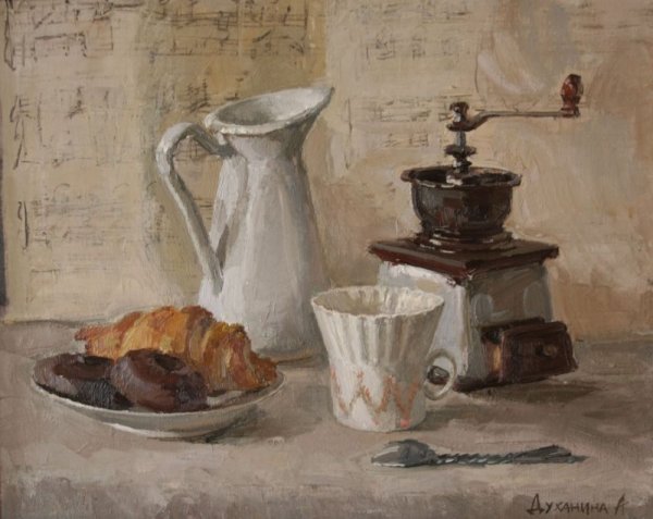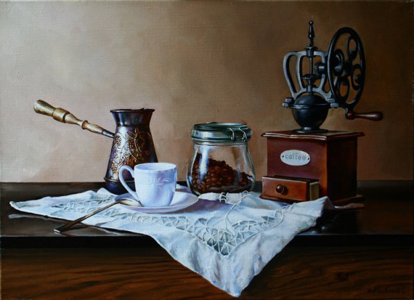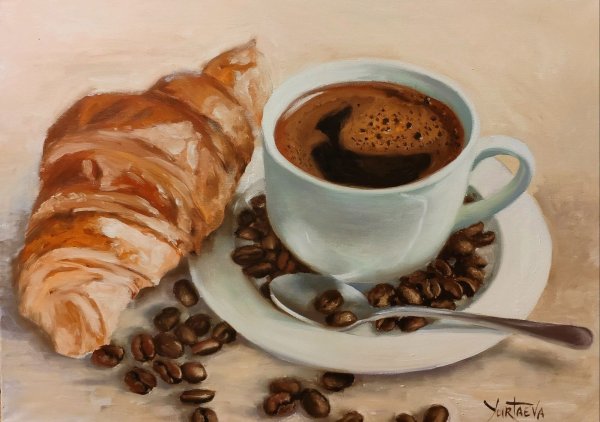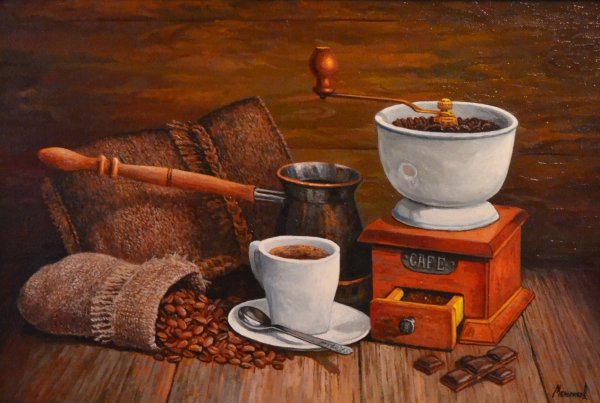 Ваш взгляд на кофе никогда не будет прежним после того, как вы увидите этот натюрморт. Он олицетворяет искусство и элегантность, захватывает вас своей простотой и одновременно сложностью. Каждая деталь этого произведения мастерски выполнена: от ароматных зерен кофе до изысканной фарфоровой чашки, которая словно приглашает вас в мир наслаждения и блаженства. Вы почувствуете запах свежесваренного кофе, сладость его вкуса и тепло, которое он дарит вашему телу и душе. Натюрморт с кофе - это воплощение гармонии и умиротворения, который навсегда запечатлится в вашем сердце и воспоминаниях.