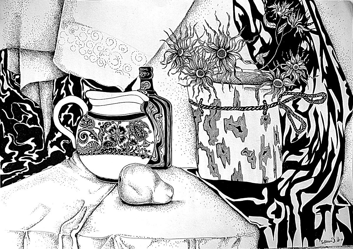 Графический натюрморт, выполненный гелевой ручкой, - это удивительное произведение искусства, которое привлекает внимание своей оригинальностью и тонкостью исполнения. Каждая линия и деталь созданы с помощью умелого руки художника, который использует гелевую ручку для создания насыщенных цветовых переходов и точных контуров. Оттенки и текстуры передаются с невероятной точностью, придавая работе реалистичность и глубину. Графический натюрморт гелевой ручкой станет ярким и запоминающимся акцентом в интерьере, а также замечательным подарком для ценителей искусства.