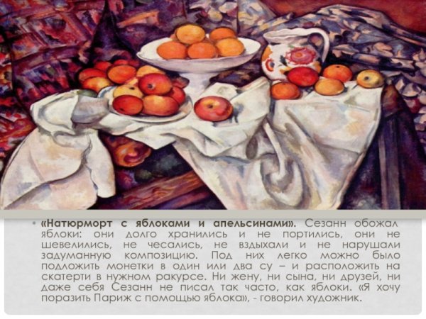 Натюрморт с яблоками и апельсинами Поля Сезанна - это произведение искусства, которое привлекает внимание своей яркостью и живописными деталями. Картина позволяет зрителю окунуться в мир фруктов и ощутить их свежесть и сочность. Яблоки и апельсины изображены с такой реалистичностью, что кажется, будто они находятся перед нами. Композиция выполнена с помощью ярких цветов и аккуратных штрихов, создавая чувство полной гармонии и баланса. Это произведение отлично подходит для тех, кто ценит искусство и хочет добавить в свой интерьер изысканности и элегантности.