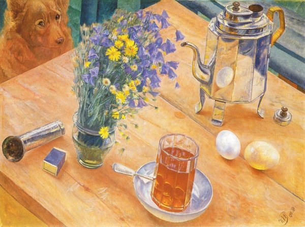 Водкин натюрморт – это произведение русского художника Алексея Водкина, известного своими яркими и экспрессивными работами. Натюрморт представляет собой композицию из различных предметов – фруктов, цветов, посуды и других элементов, расставленных на столе или подставке. Характерными чертами этой работы является яркая цветовая гамма, мастерство передачи светотени и детальная проработка каждого объекта. Водкин создает эффект глубины и объемности, а также передает настроение и эмоции через выбор и расположение предметов. В результате, его натюрморты оживают на холсте и вызывают у зрителя чувство радости и восхищения перед искусством.