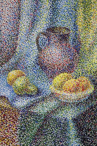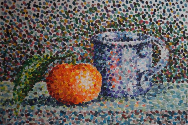 Натюрморт пуантель - это художественный жанр, в котором изображается неподвижные предметы и объекты с помощью точечных мазков или пятен. Этот стиль работы придает особую выразительность и глубину обычным предметам, создавая игру света и теней на холсте. Натюрморт пуантель является одним из самых интересных и оригинальных направлений в живописи, которое часто используется для создания эффекта объемности и реалистичности. Широко применяется в искусстве и декоре для создания уникальных и элегантных произведений, благодаря которым можно добавить в интерьер оригинальность и изысканность.