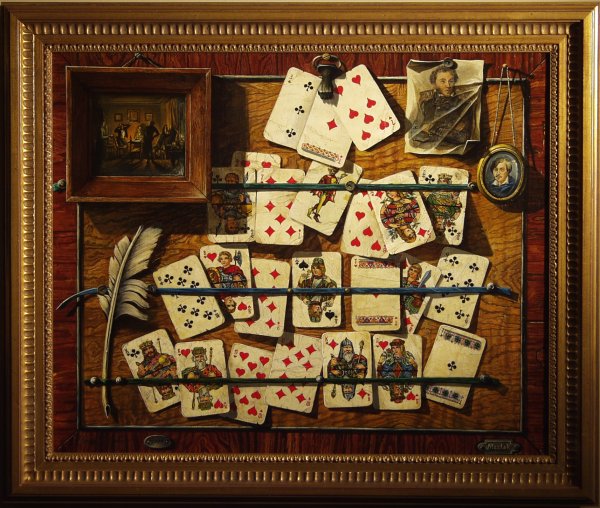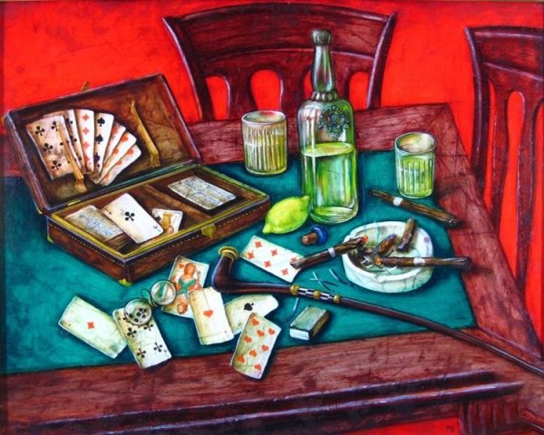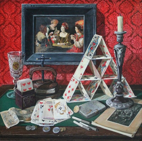 Натюрморт с картами - это удивительное произведение искусства, которое сочетает в себе эстетическую привлекательность и символическое значение. В этом натюрморте изображены различные игральные карты, расставленные аккуратно на столе или другой поверхности. Кажется, что время замедляется, когда рассматриваешь эту композицию, и ты погружаешься в мир азартных игр и загадочности. Карты - это не только символ развлечения, но и инструмент предсказания будущего. Они воплощают в себе возможность выигрыша и поражения, удачи и неудачи. Натюрморт с картами является интересным предметом для изучения и интерпретации, он приглашает зрителя задуматься о своих решениях и выборах в жизни. Это произведение искусства может быть отличным дополнением для интерьера, добавляя в помещение элемент загадки и философии.