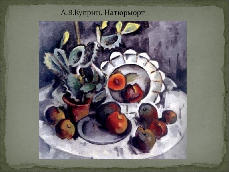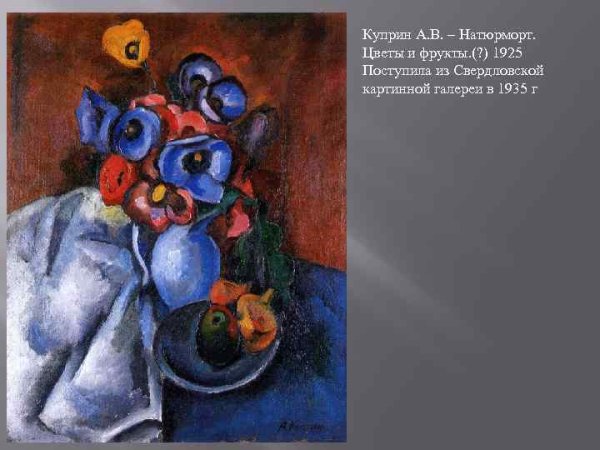 Куприн натюрморт – это произведение известного русского писателя Александра Куприна, которое знаменито своей яркой и живописной описательностью. В этом произведении автор представляет читателям набор различных предметов, таких как фрукты, цветы, посуда или другие объекты, которые он располагает на специально подготовленном фоне. Натюрморт в творчестве Куприна не только отражает его мастерство в создании образов, но и передает особую атмосферу и настроение. Благодаря художественным приемам, таким как композиция, световое и цветовое решение, каждый предмет становится частью общего образа, который привлекает внимание зрителя своей красотой и гармонией. Куприн натюрморт – это возможность окунуться в мир изящества и эстетики, насладиться красотой простых, но уникальных предметов, и почувствовать глубину и богатство их смысла.
