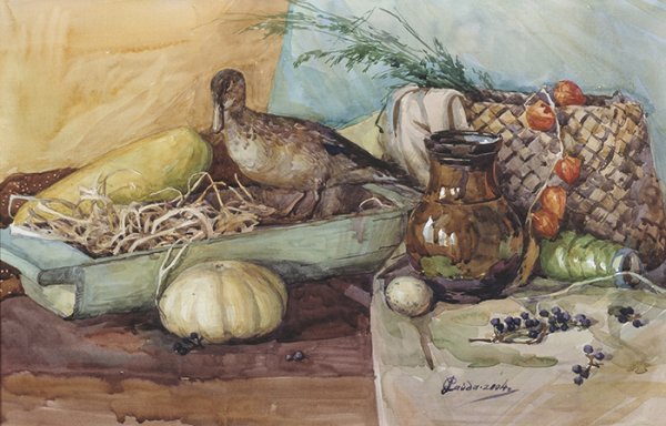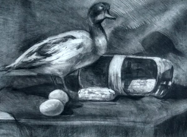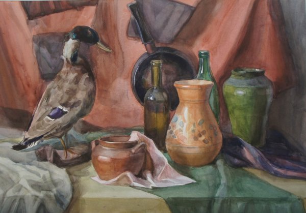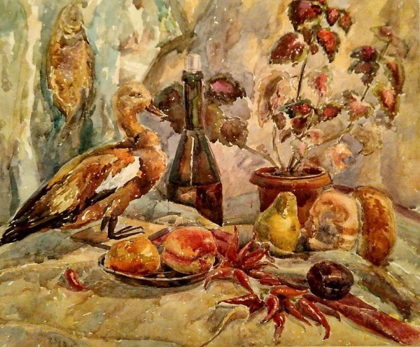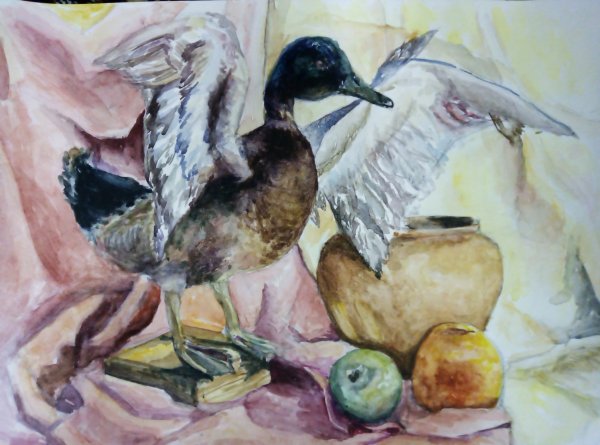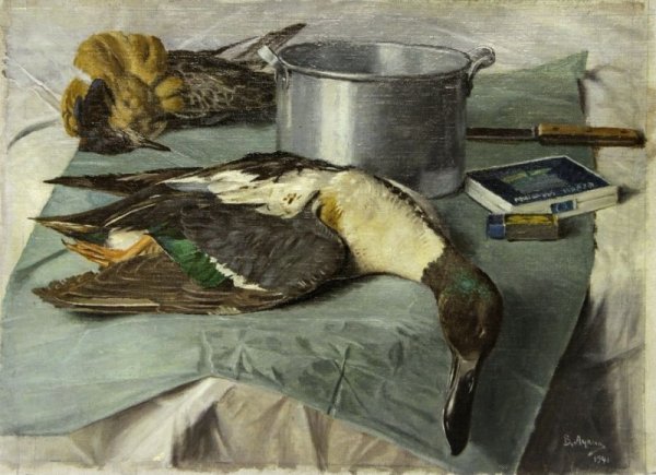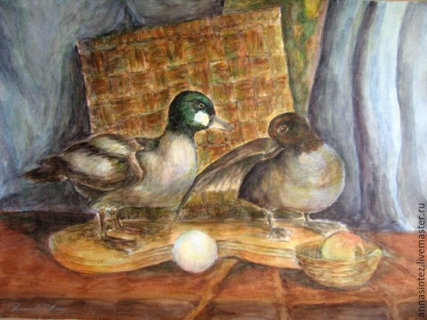 Натюрморт с уткой - это произведение искусства, которое воплощает красоту природы и ее богатство. В этой композиции утка изображена с большим мастерством: ее перья выглядят блестящими, а форма тела передана до мельчайших деталей. Утка является центральным объектом натюрморта, она привлекает внимание своей живостью и реалистичностью. Изысканные предметы, окружающие утку - столовые приборы, фрукты или цветы, добавляют композиции элегантности и изысканности. Натюрморт с уткой - это не только отличный способ оценить искусство художника, но и насладиться красотой и гармонией образа, который будет украшать интерьер и приносить радость своему владельцу.