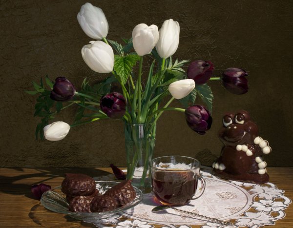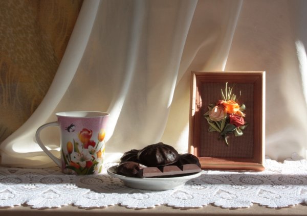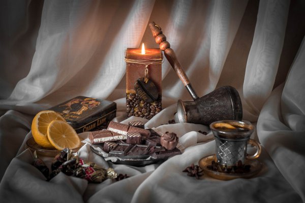 Этот натюрморт с шоколадом привлекает взгляды и завораживает своей изысканностью. Каждый элемент на этой композиции, начиная от шоколадных конфет и заканчивая шоколадными плитками, выглядит столь аппетитно, что сложно устоять перед искушением сразиться с ними наедине. Очарование этих шоколадных деликатесов усиливается благодаря пронзительному аромату, который заполняет комнату. Такой натюрморт идеально подойдет для создания атмосферы роскоши и изысканности на любом мероприятии или просто для создания атмосферы наслаждения и радости в повседневной жизни. Отправьтесь в мир шоколадного волшебства с этим натюрмортом!