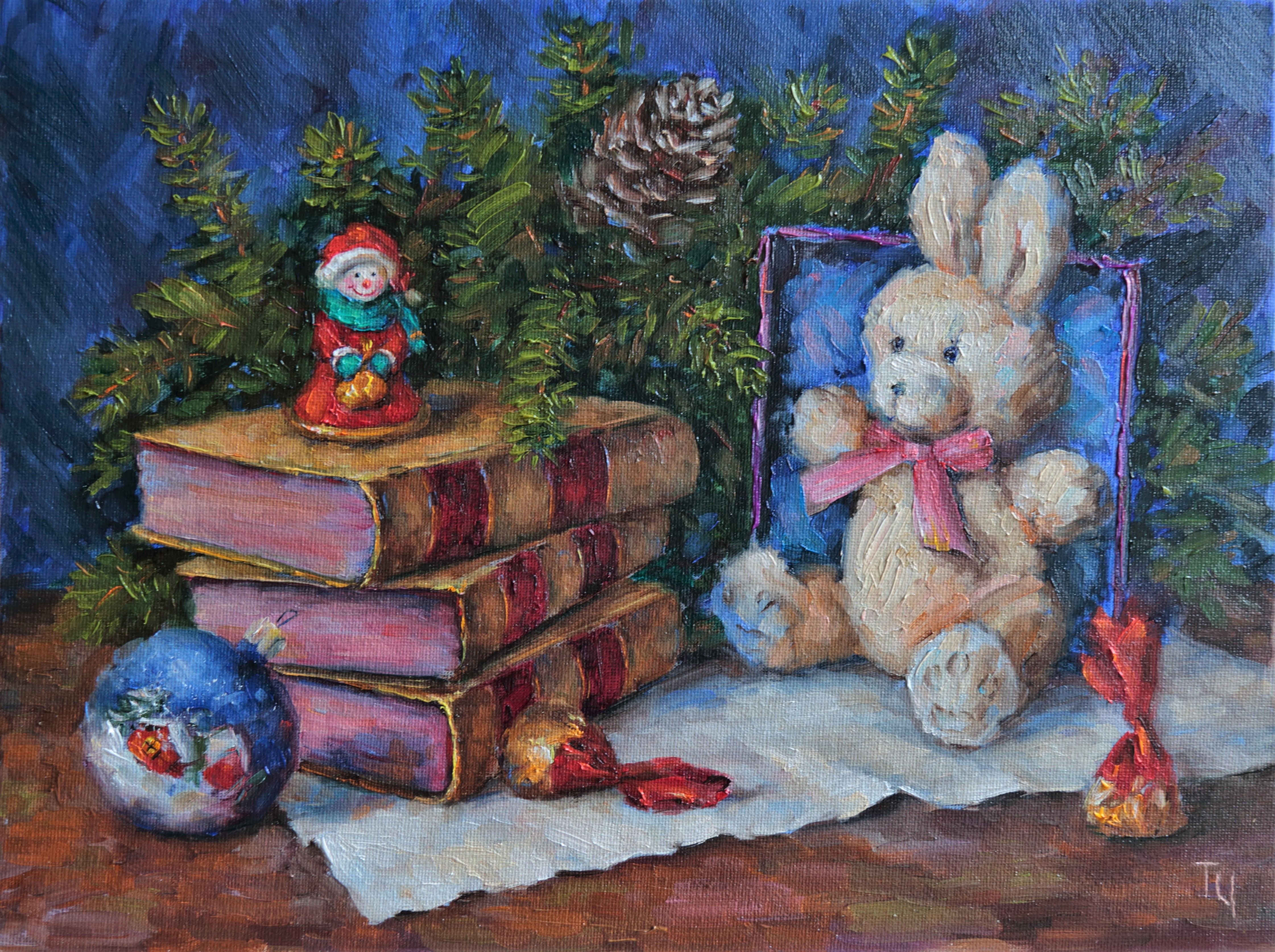 Волшебный натюрморт на новогоднюю тему оживляет атмосферу праздника и приносит радость всем окружающим. Яркие, расписные шары на елке, сверкающие гирлянды и мерцающие огоньки создают уютную и волшебную атмосферу праздника. На столе расположены разноцветные фрукты, сладости и блюда, которые символизируют изобилие и процветание. Аромат свежих хвои и запах вкусных блюд наполняет воздух, добавляя праздничного настроения. В центре натюрморта располагается ожидаемый подарок – ярко упакованный подарочный набор, который уже сейчас разбуждает детскую радость и предвкушение. Новогодний натюрморт – это не только прекрасное украшение интерьера, но и воплощение самых приятных и теплых эмоций, связанных с радостным ожиданием и сбывшимися желаниями в этот волшебный праздник.