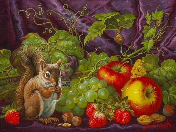 Натюрморт с белкой - это удивительное произведение искусства, которое запечатлевает живую природу во всей ее красоте. В этом натюрморте изображена прекрасная белка, окруженная разнообразными предметами и элементами природы. Белка, с ее изящными движениями и яркой окраской, становится центром внимания и придает этому произведению особую энергию и воздушность. Она напоминает о живости и быстроте самой природы, а также символизирует игривость и независимость. Остальные предметы на натюрморте добавляют гармонии и позволяют создать уникальную композицию. Все вместе они образуют прекрасное сочетание цветов, текстур и форм, отражая богатство и разнообразие живой природы. Натюрморт с белкой - это не только художественное произведение, но и маленький кусочек жизни, который заставляет нас замедлиться и насладиться прекрасными моментами природы.