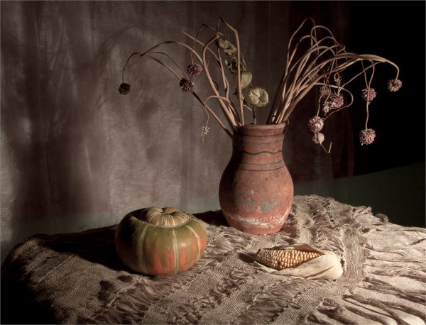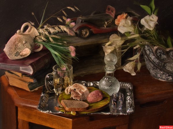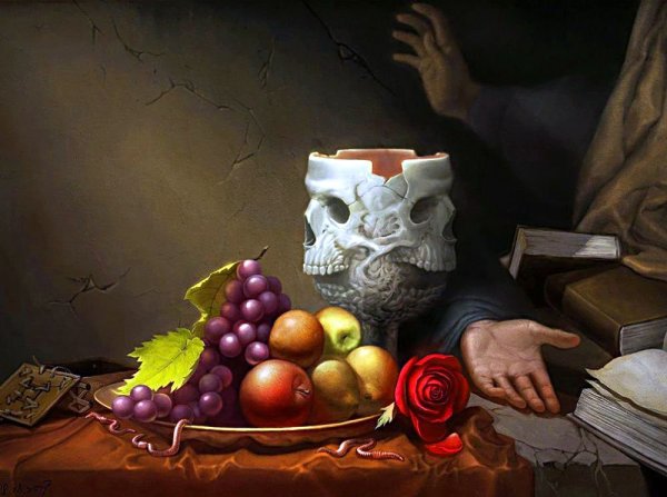 Натюрморт драматический - это форма изобразительного искусства, которая пытается передать силу и эмоциональность через композицию предметов. В таком натюрморте использование темных оттенков, глубоких контрастов и игры света и тени создает атмосферу напряжения и интриги. Предметы, выбранные для такого натюрморта, обычно имеют символическое значение и могут вызывать чувство тревоги или неопределенности. Этот стиль натюрморта позволяет зрителю пережить эмоции и погрузиться в атмосферу драматизма.