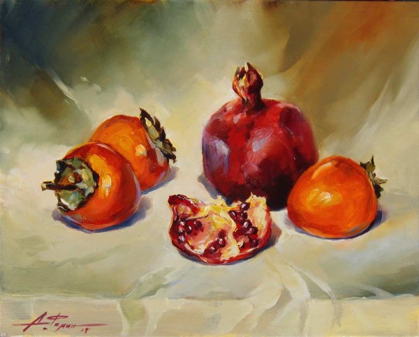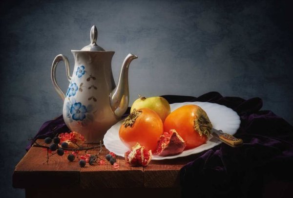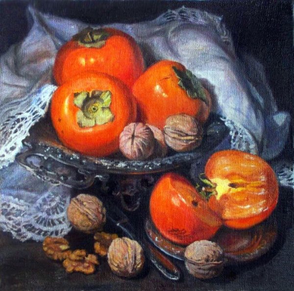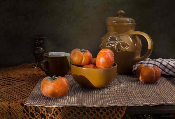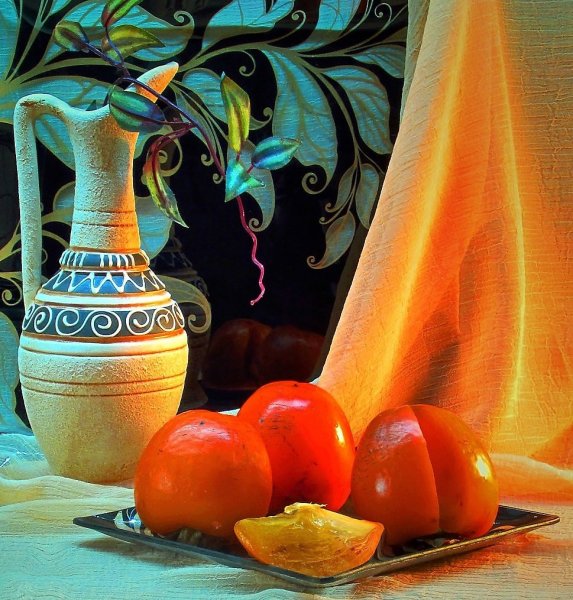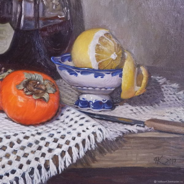 Натюрморт с хурмой - это удивительное произведение искусства, которое восхищает своей простотой и изысканностью. Хурма, сочная и аппетитная, стала главным объектом этого натюрморта, олицетворяя природную красоту и богатство. Нежные оттенки золотисто-оранжевых плодов создают яркий контраст с фоном, подчеркивая их естественную привлекательность. Каждая деталь, каждая текстура на этой картине тщательно проработана, что придает ей реалистичность и живость. Натюрморт с хурмой - это не только искусство передать красоту природы, но и возможность почувствовать аромат и вкус этих уникальных плодов. Он заставляет нас замедлиться, насладиться моментом и в полной мере оценить простую, но потрясающую красоту окружающего мира.