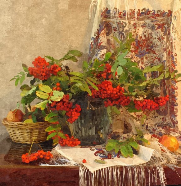 Наш натюрморт с шалью — это искусство, которое захватывает вас своей изысканностью и тонкостью. Центральным элементом этой композиции является прекрасная шаль, которая лежит на столе, создавая атмосферу загадочности и элегантности. Ее яркий цвет и узоры привлекают внимание и наполняют комнату живостью и красотой. Вокруг шали разбросаны различные предметы, такие как фрукты, цветы и другие аксессуары, которые придают натюрморту гармоничность и богатство. Каждая деталь здесь имеет свое значение и совершенство. Наш натюрморт с шалью — это не только произведение искусства, но и источник вдохновения для вас. Он позволяет увидеть красоту в простых вещах и найти гармонию в окружающем мире.