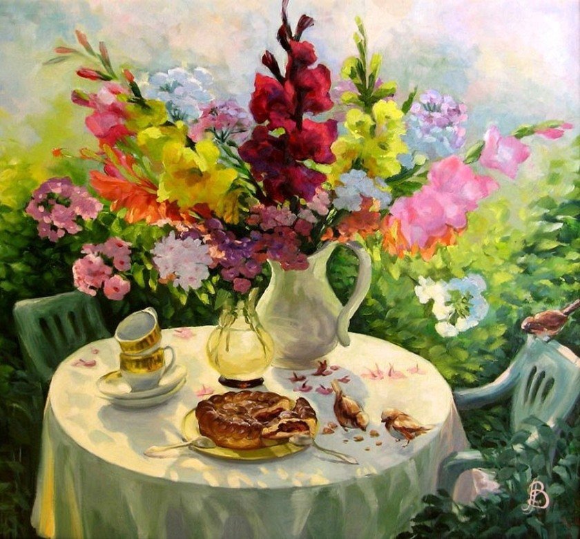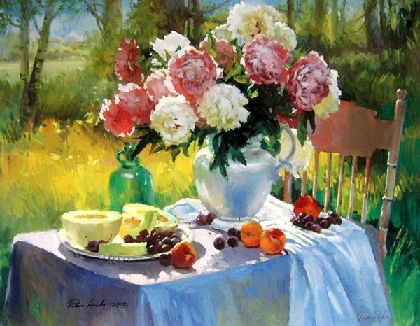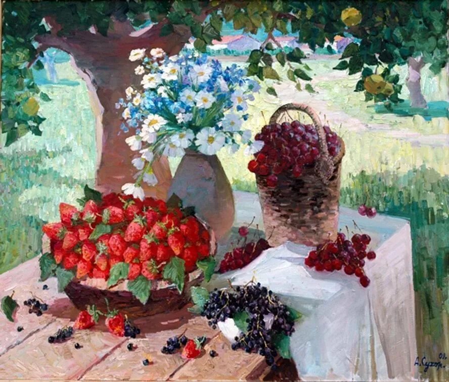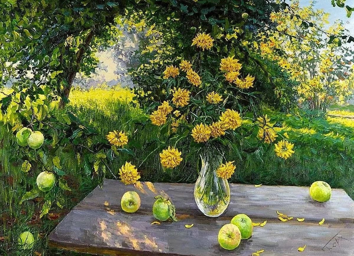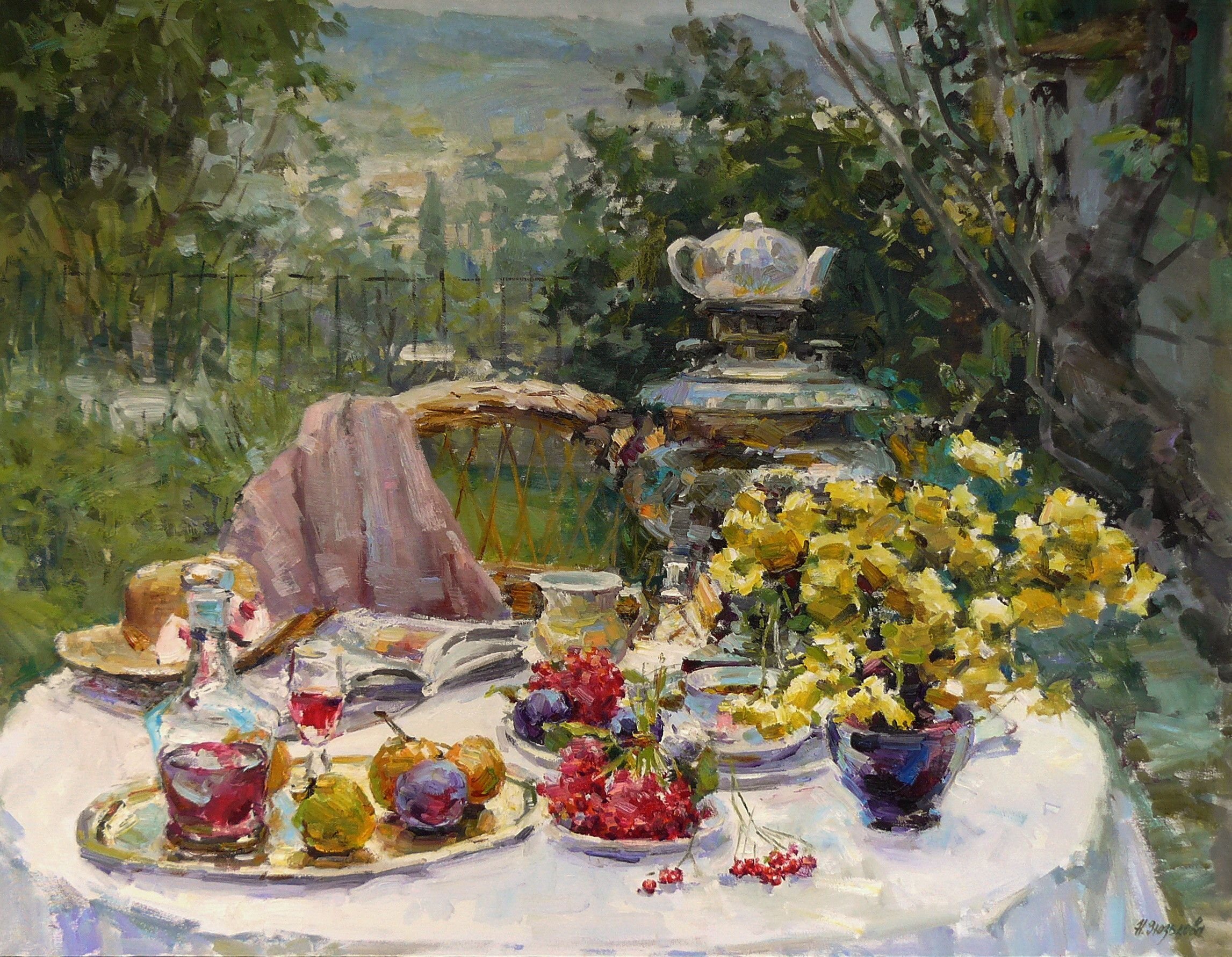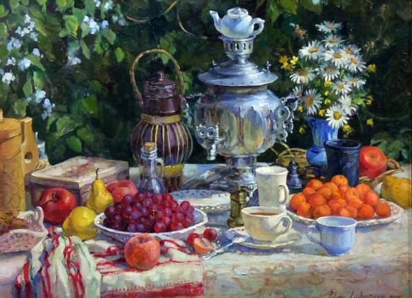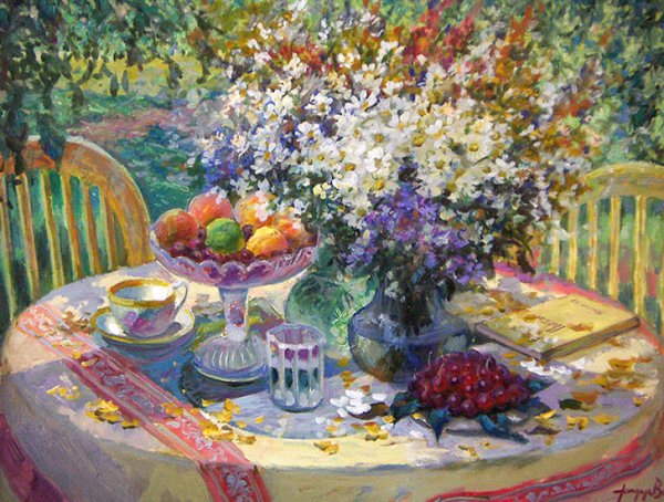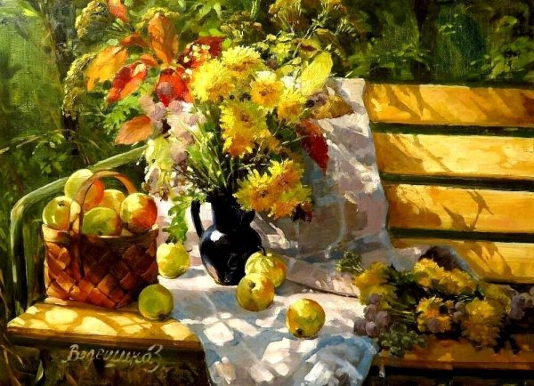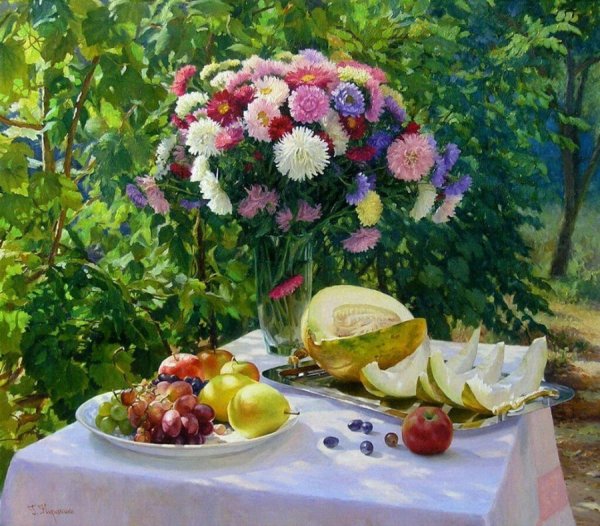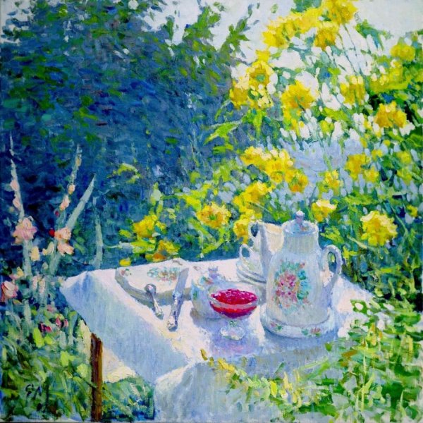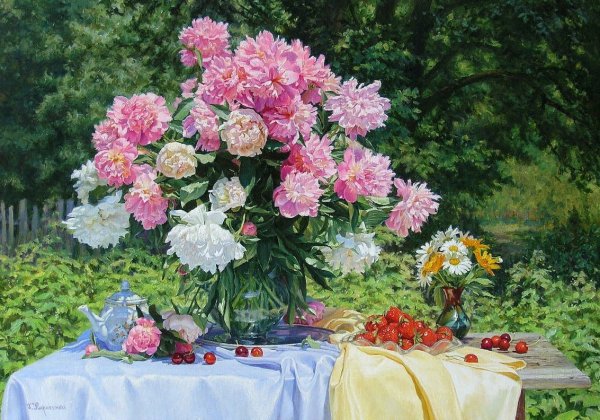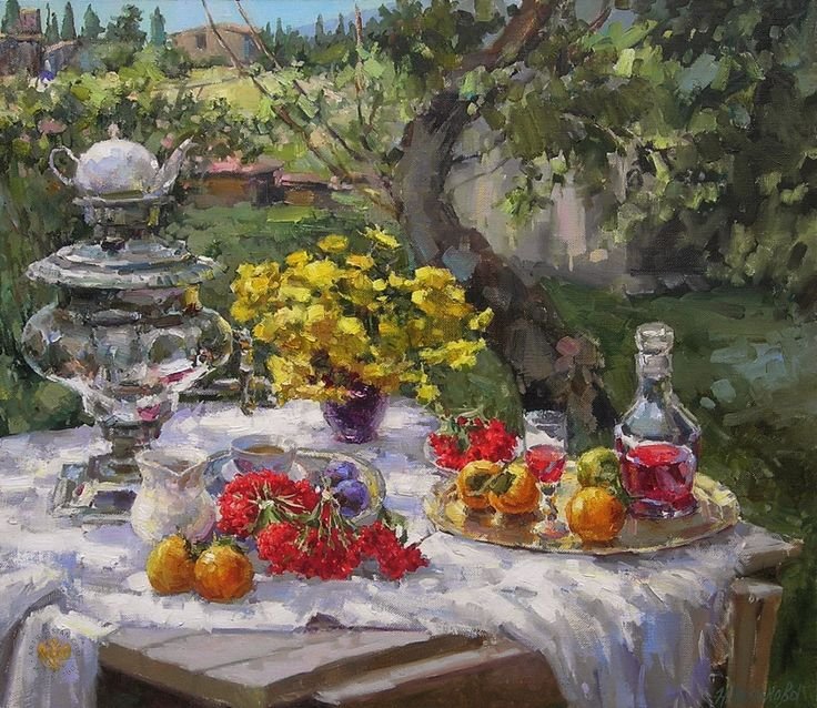 Натюрморт в саду - это искусство, которое привносит красоту природы и мир окружающего нас места в домашнюю обстановку. В таком натюрморте можно увидеть собрание различных цветов, плодов, овощей и других предметов, создающих атмосферу гармонии и умиротворения. Такое произведение искусства позволяет почувствовать присутствие природы и перенести себя в спокойное и расслабляющее место, где можно насладиться ее красотой и богатством. Натюрморты в саду являются отличным выбором для тех, кто стремится добавить уют и эстетику в свою жизнь и окружающую обстановку.