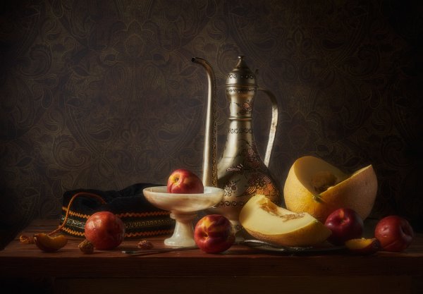 Натюрморт предметный - это живописная композиция, в которой изображены различные предметы, такие как фрукты, цветы, посуда или другие объекты. В таком натюрморте основное внимание уделяется деталям и формам предметов, а также игре света и теней. Этот стиль живописи позволяет передать красоту и хрупкость мироздания через отображение обыденных вещей. Натюрморт предметный может быть ярким и насыщенным, либо мягким и нежным, в зависимости от выбранных объектов и их расположения на холсте. Это искусство, которое позволяет нам увидеть простоту и эстетическую ценность повседневных предметов и насладиться их красотой.