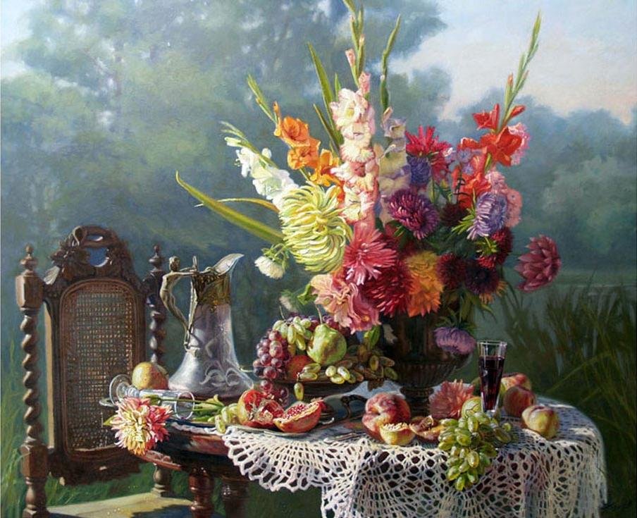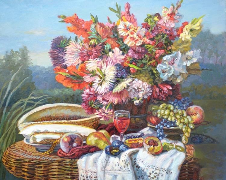 Летний натюрморт "панна" - это яркое и красочное произведение искусства, которое переносит нас в атмосферу летнего солнца и жаркого времени года. Он изображает богатство природы во всей своей красоте - сочные фрукты, свежие овощи, цветущие цветы и зелень. В каждой детали этого натюрморта можно увидеть тщательную проработку и внимание к деталям, что создает ощущение реальности и приносит наслаждение от просмотра. Летний натюрморт "панна" станет прекрасным украшением вашего интерьера, добавив в него свежих красок и радости лета.