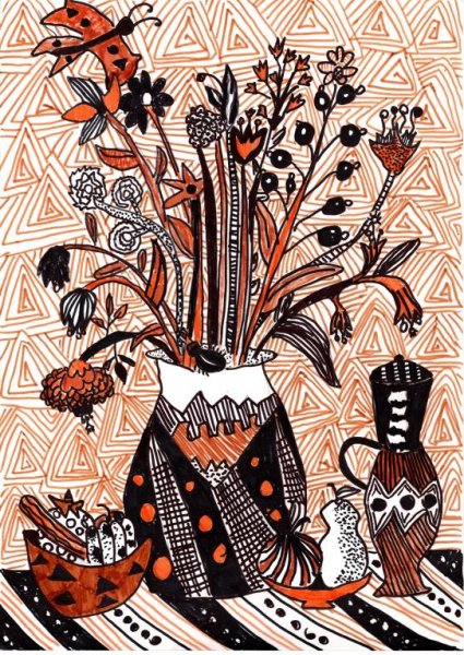Декоративный натюрморт, созданный с использованием маркеров, представляет собой уникальное художественное произведение, которое привлекает внимание своей красотой и оригинальностью. Маркеры позволяют художникам выразить свою творческую индивидуальность и создать яркие, насыщенные цвета, которые подчеркивают детали и текстуры объектов на натюрморте. Благодаря своей многофункциональности и точности, маркеры позволяют создавать различные эффекты – от реалистичных до абстрактных, от мягких переходов до четких контуров. Такая комбинация между декоративной живописью и использованием маркеров делает натюрморт особенно привлекательным и интересным для любителей искусства и коллекционеров.