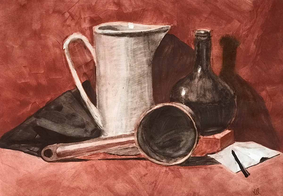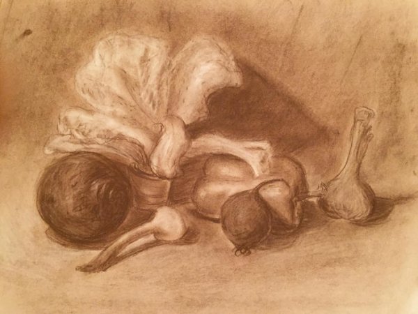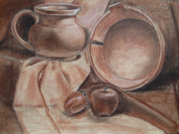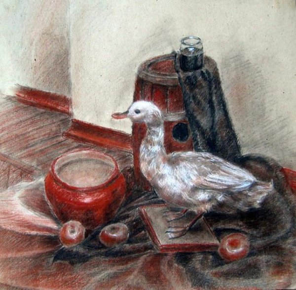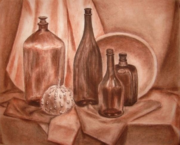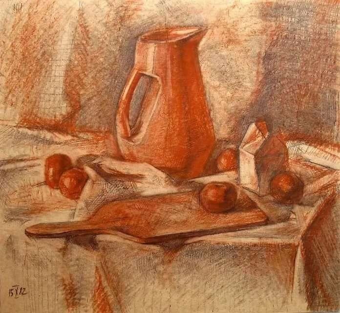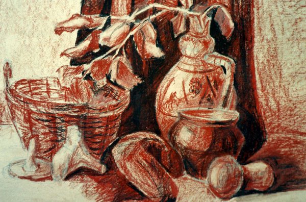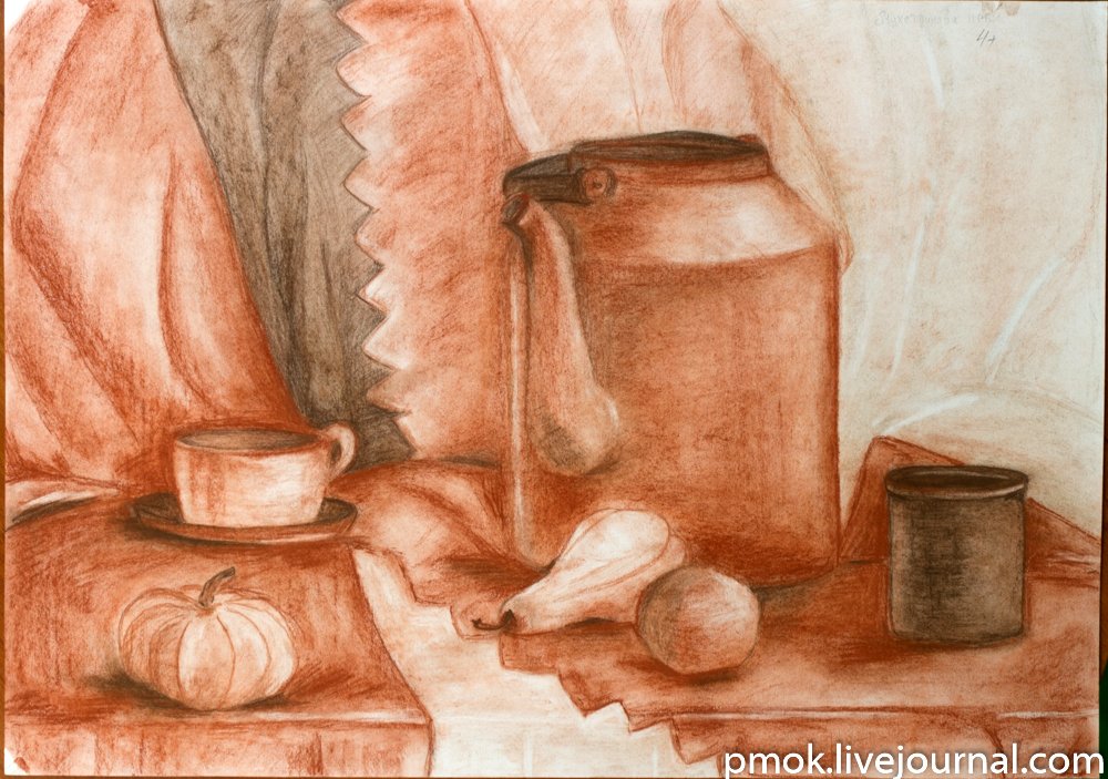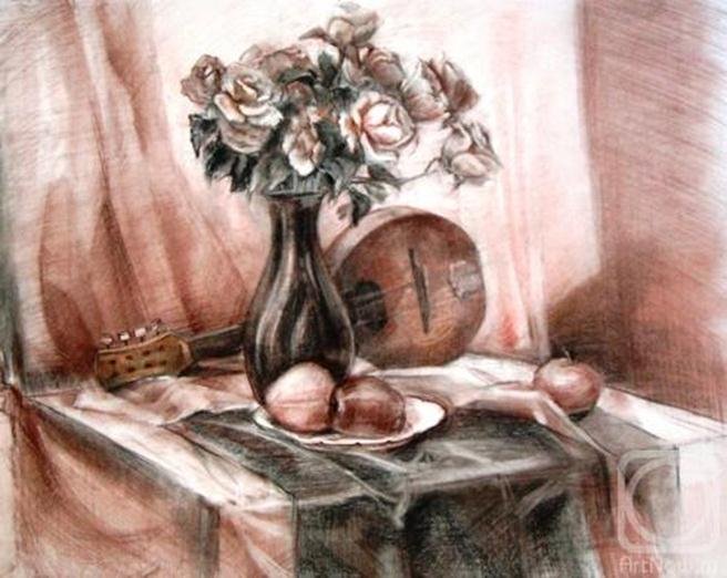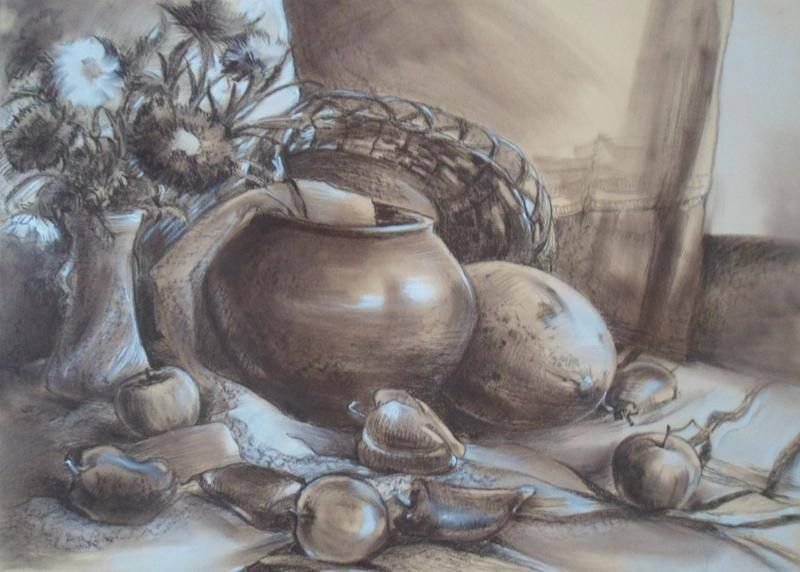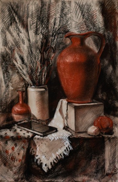 Натюрморт углем и сангвиной - это произведение искусства, которое захватывает зрителя своей эмоциональной глубиной и техническим мастерством. Воспользовавшись этими двумя материалами, художник создает неповторимую атмосферу на холсте или бумаге. Черные оттенки угля придают работе глубину и контрастность, в то время как красная сангвина добавляет еще больше выразительности и живости. Натюрморты, выполненные в такой технике, могут быть как реалистичными и детализированными, так и абстрактными и экспрессивными. Каждая линия и штрих, каждая тень и светотень передают настроение и эмоции автора, делая работу уникальной и запоминающейся.