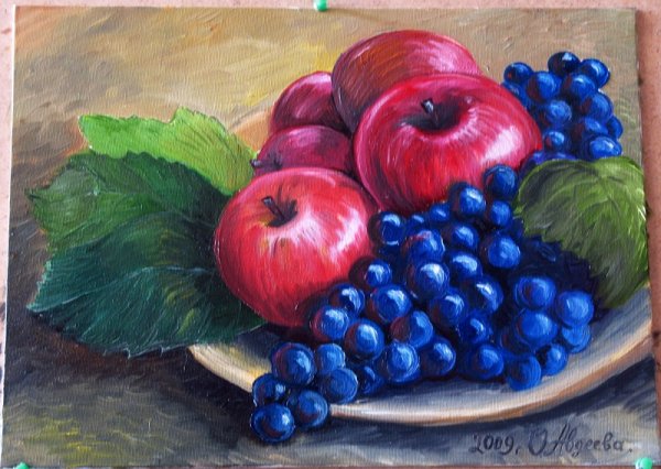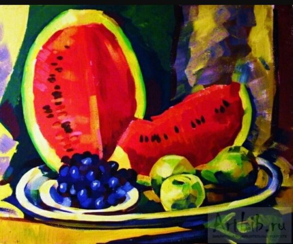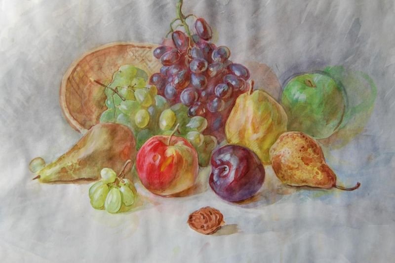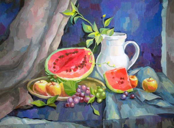 Натюрморт с фруктами, выполненный техникой гуашь, - это яркое и живописное произведение искусства. Композиция включает в себя разнообразные свежие фрукты, такие как яблоки, груши, апельсины, виноград и многое другое. Художник использует гуашь для создания насыщенных и сочных цветов, передавая привлекательность и природную красоту каждого фрукта. Это уникальное произведение искусства не только радует глаз своей яркостью и детализацией, но и вызывает аппетит, заставляя зрителя чувствовать аромат свежих фруктов. Натюрморт с фруктами гуашью станет прекрасным украшением для вашего интерьера, добавив в него нотки естественности и изысканности.