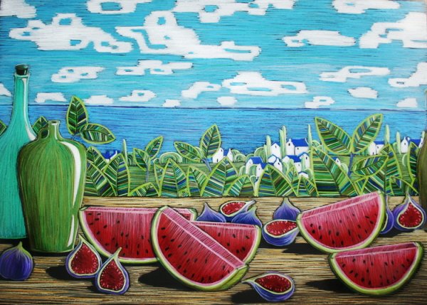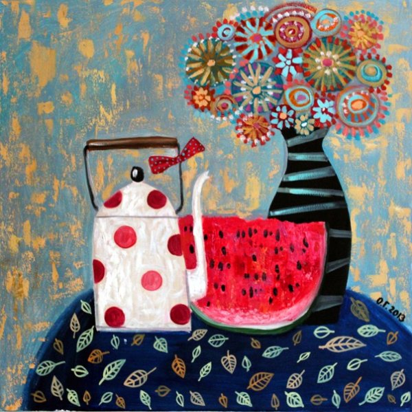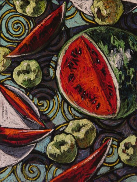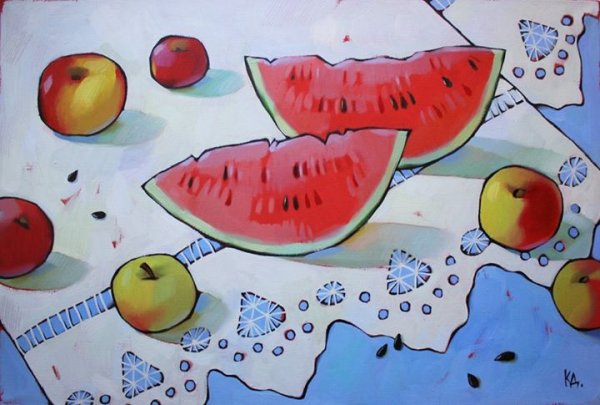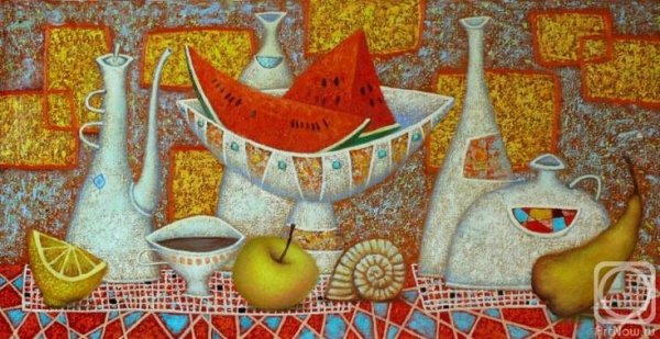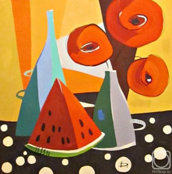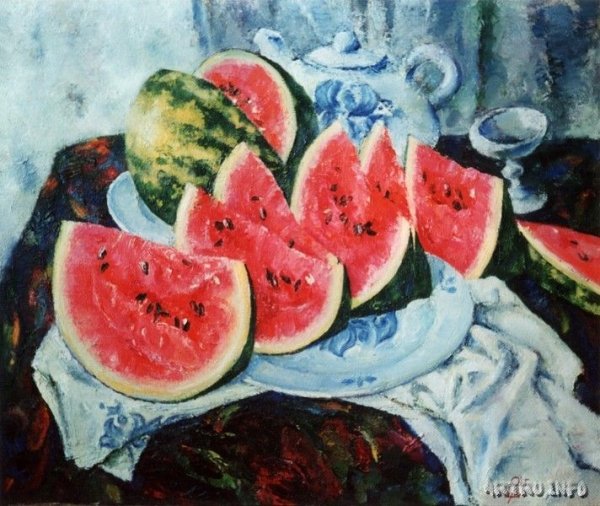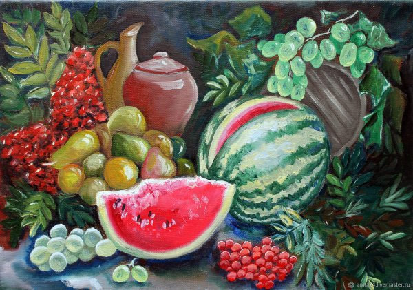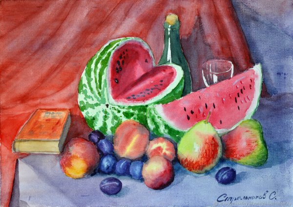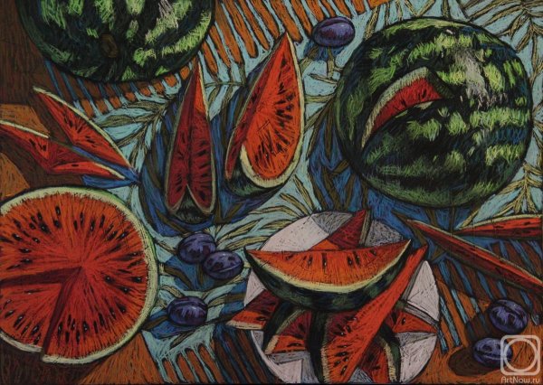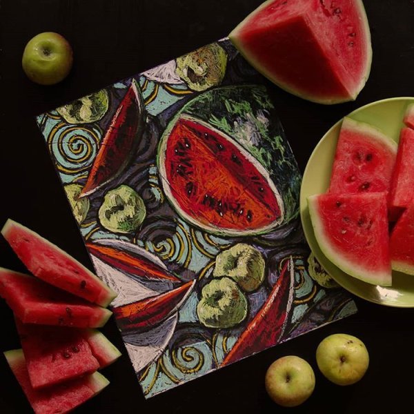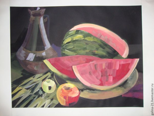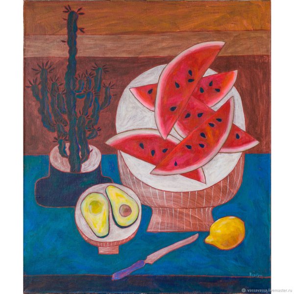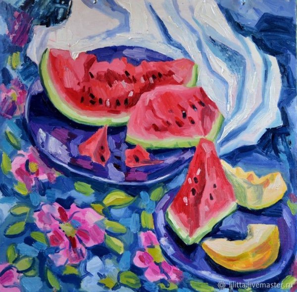 Декоративный натюрморт с арбузом - это элегантное и стильное дополнение к интерьеру вашего дома. Этот яркий и сочный фрукт привносит свежесть и радость в любое помещение. Натюрморт выполнен в технике акварели, что придает ему особую нежность и изысканность. Картина идеально подходит для гостиной, кухни или столовой, создавая атмосферу летнего праздника. Она будет прекрасным подарком для любителей красивых и оригинальных предметов декора. Разместите этот декоративный натюрморт на столе или полке - и он станет ярким акцентом и центром внимания в вашем доме.
