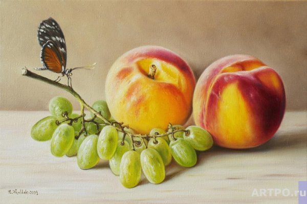 Натюрморт с фруктами и маслом - это живописное произведение искусства, которое восхищает своей красотой и уникальностью. Оно позволяет зрителю окунуться в мир ярких цветов и сочных оттенков, передающих аромат и свежесть фруктов. Масло, нанесенное на холст, придает работе дополнительный эффект, создавая игру света и тени, добавляя глубину и объемность. Каждая деталь, начиная от ярко-красного яблока до спелого апельсина или сладкого персика, выглядит очень реалистично и привлекает внимание своей яркостью и явной свежестью. Такой натюрморт с фруктами и маслом станет прекрасным украшением для интерьера и подарком для любителей изящных искусств.