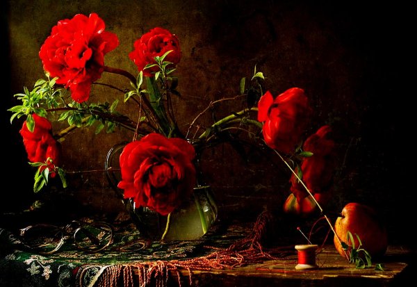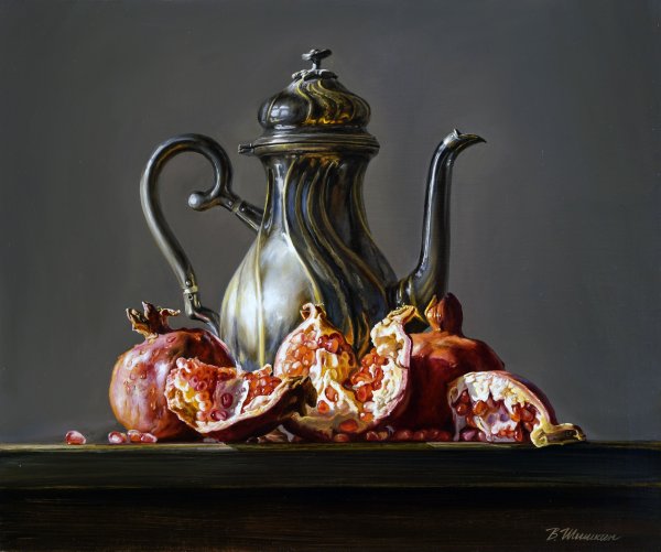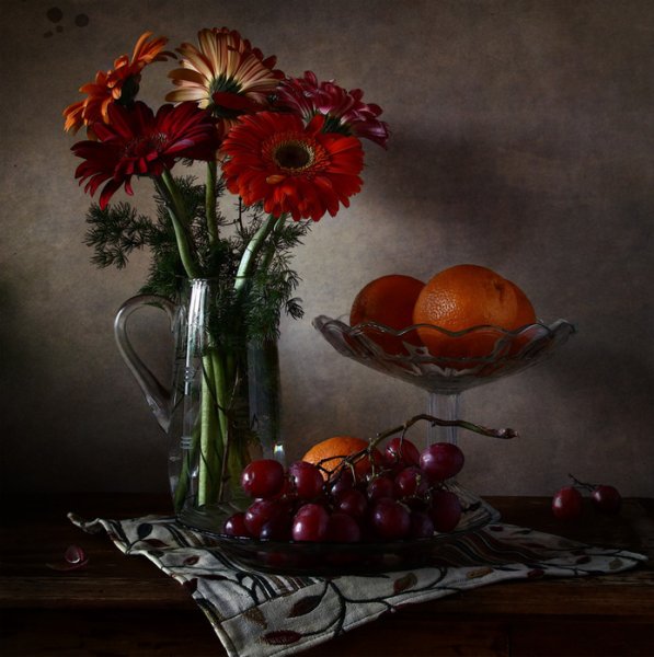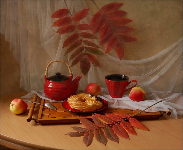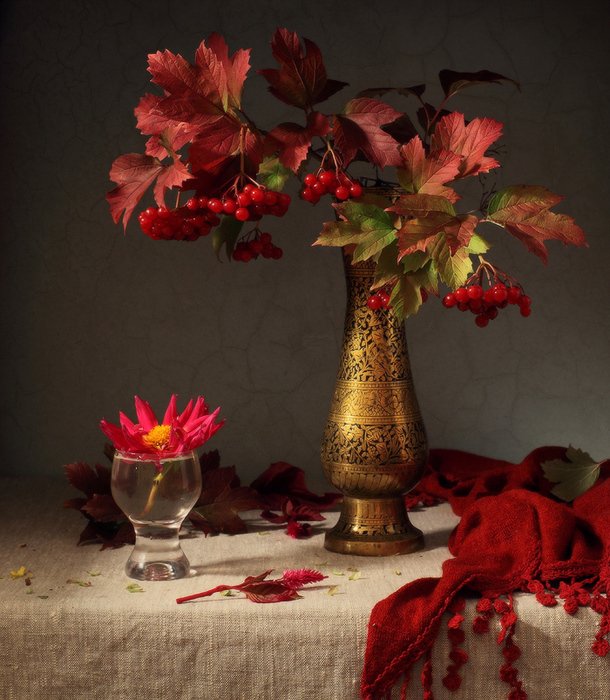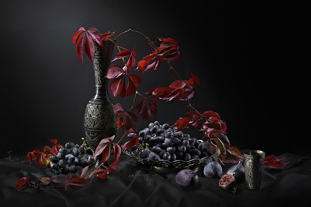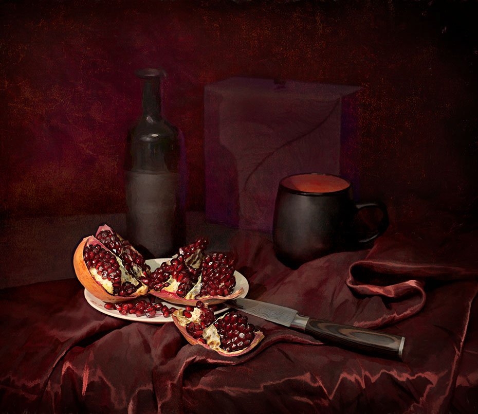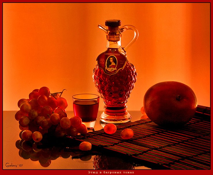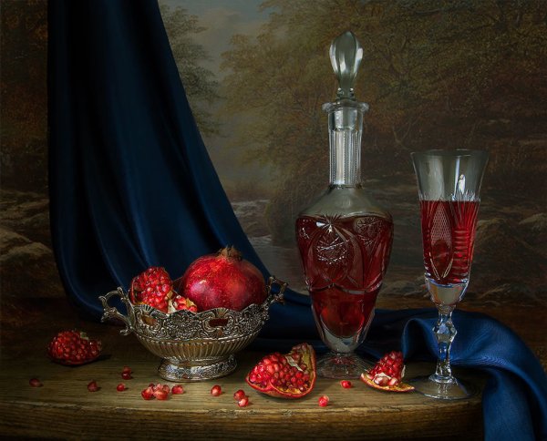 Натюрморт в багровых тонах - это произведение искусства, которое поражает своей глубиной и эмоциональной насыщенностью. Багровые оттенки создают атмосферу загадочности и таинственности, притягивая взгляд зрителя. В этом натюрморте каждый объект, будь то цветы, фрукты или предметы быта, пропитаны силой и выразительностью багрового цвета. Это создает ощущение гармонии и умиротворения, в то же время вызывая интерес и желание вникнуть в скрытый смысл произведения. Натюрморт в багровых тонах способен перенести зрителя в другую реальность, где времена и пространства сливаются в единое целое, погружая в мир красоты и таинственности.