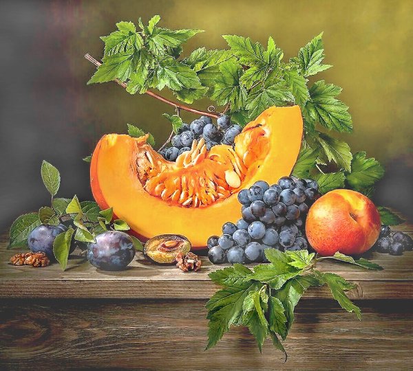 Натюрморт с фруктами - это удивительная композиция, которая захватывает взгляд своей красотой и яркостью. В этом произведении искусства фрукты расположены таким образом, что создается ощущение гармонии и равновесия. Каждый фрукт - отображение жизни и плодородия природы. Яркие цвета и сочность фруктов привлекают внимание зрителя и вызывают чувство аппетита. Эта композиция станет настоящим украшением для интерьера и подарит радость и вдохновение каждому, кто ее увидит.
