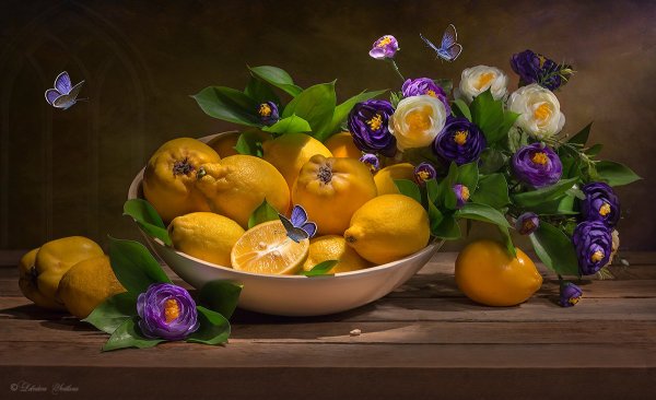 Натюрморт с лимонами, апельсинами и розой - это великолепное произведение искусства, которое воплощает красоту и свежесть природы. Композиция состоит из ярких и сочных цитрусовых плодов - лимонов и апельсинов, которые олицетворяют яркость и энергию жизни. Они расположены на фоне нежной и ароматной розы, которая добавляет нотку романтики и нежности. Это произведение передает чувство лета, свежести и радости, заставляет зрителя почувствовать аромат и вкус цитрусовых, а также насладиться прекрасной красотой розы. Натюрморт с лимонами, апельсинами и розой - это идеальное украшение для дома или офиса, которое привносит позитивные эмоции и радость в окружающую обстановку.