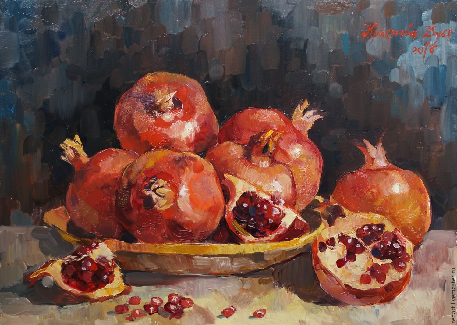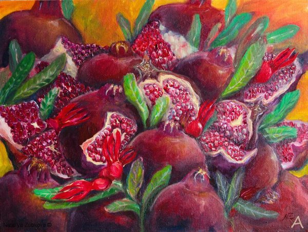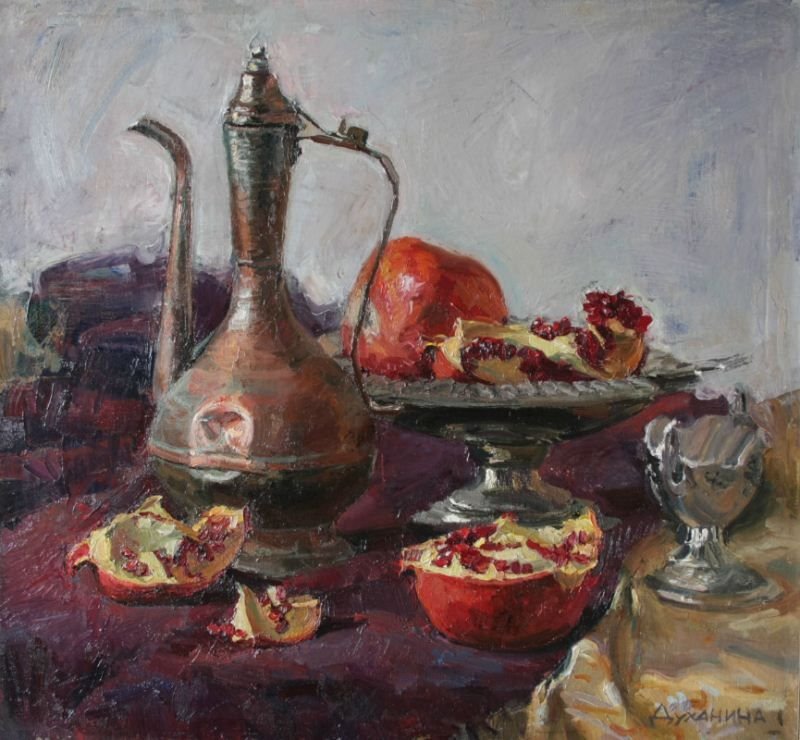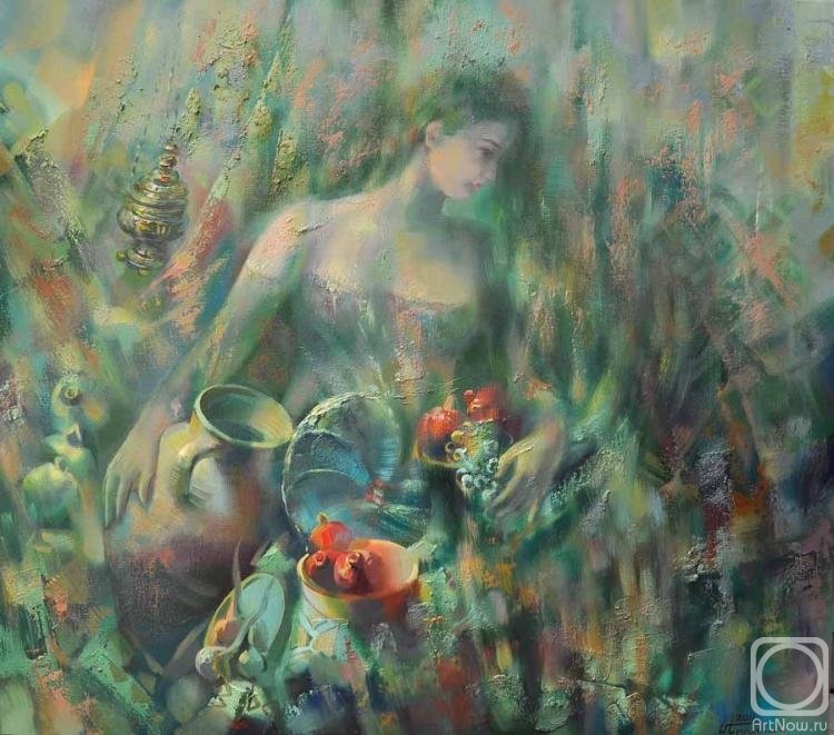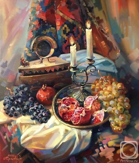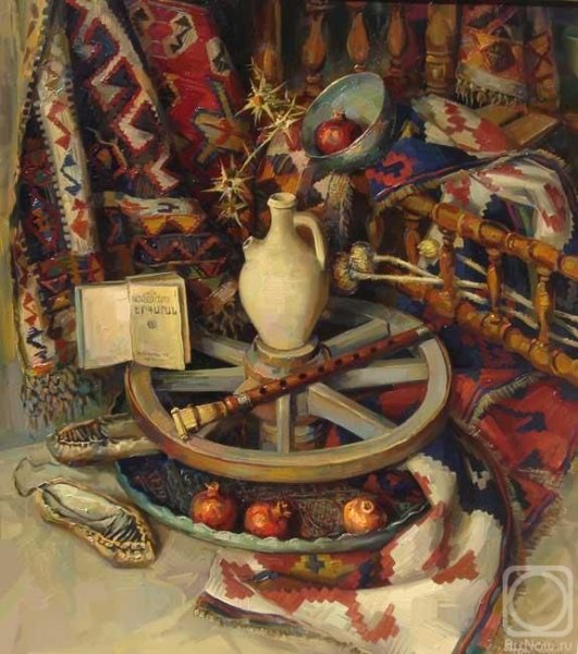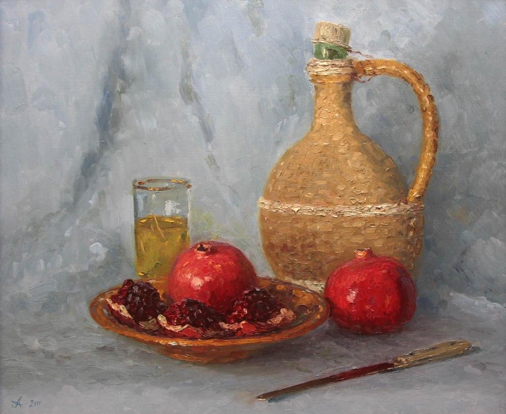 Меружан Хачатрян - известный художник, чьи произведения впечатляют своей оригинальностью и глубиной. В его натюрмортах каждый элемент имеет особое значение, создавая уникальную атмосферу и передавая эмоции зрителю. Один из таких натюрмортов - с гранатом и айвой. Гранат символизирует страсть, силу и плодородие, а айва - изящество и нежность. Композиция произведения прекрасно сбалансирована, придающая ему гармоничность и эстетическую привлекательность. Работы Меружана Хачатряна всегда вызывают интерес и восторг у ценителей искусства, привлекая своей уникальностью и тонким поэтическим подходом к созданию образа.