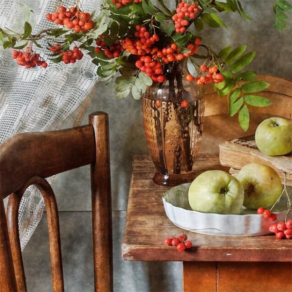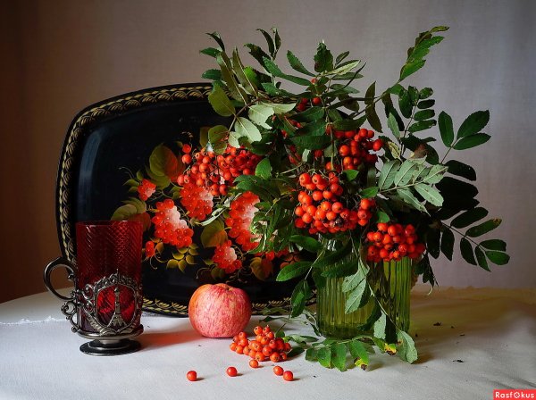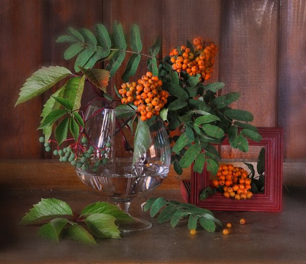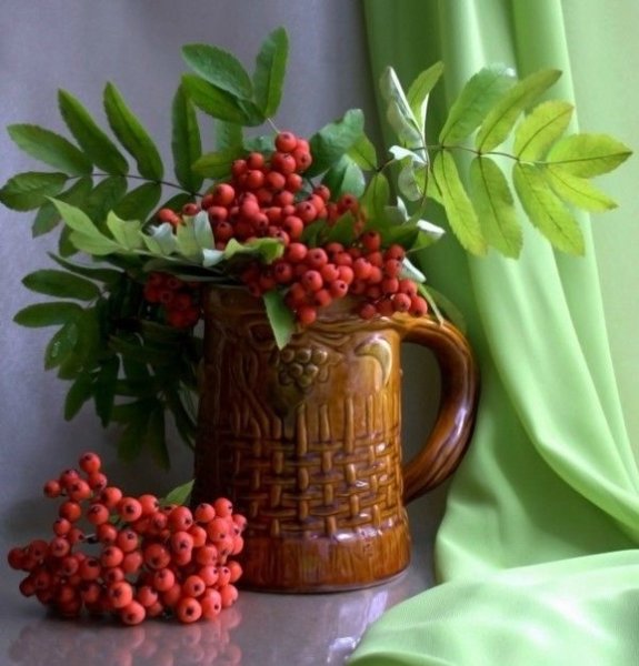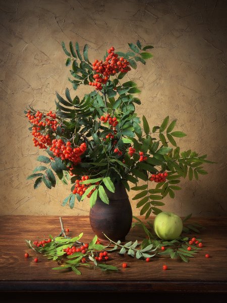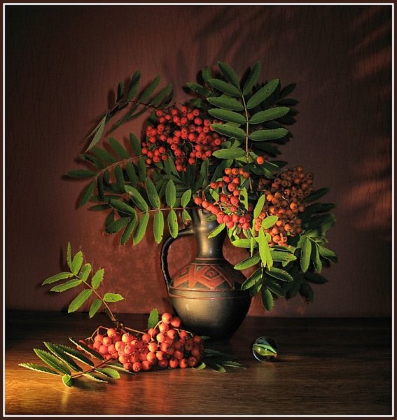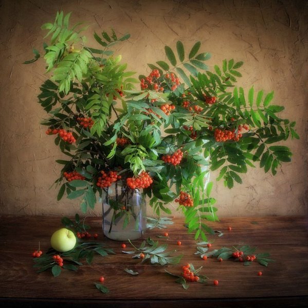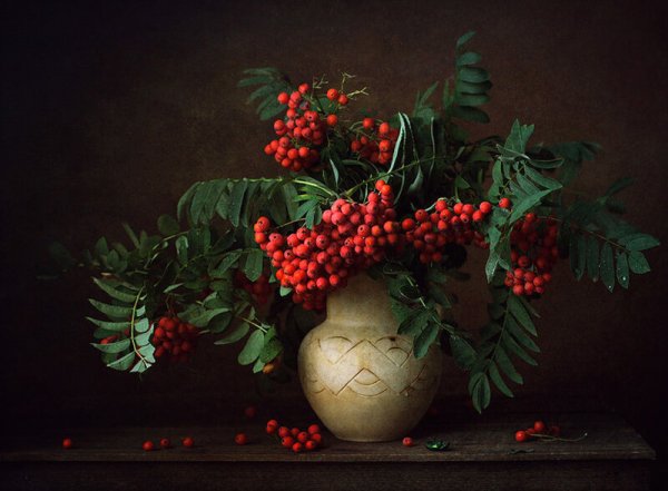 Натюрморт с изображением рябины – это картина, на которой изображены ветви и плоды рябины. Рябина – это декоративное и плодовое растение, символизирующее осень и обещающее богатый урожай. На натюрморте ветви рябины могут быть изображены во всей их красоте и изумительном цветочном аранжировке, а плоды рябины – в разных стадиях созревания и оттенках ярко-красного цвета. Такой натюрморт создает атмосферу теплоты и уюта в интерьере, придает ему особый шарм и оживляет пространство своими яркими красками. Все это делает натюрморт рябина популярным и востребованным элементом декора и искусства.