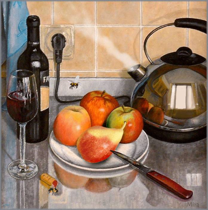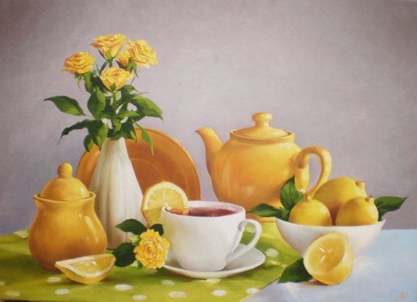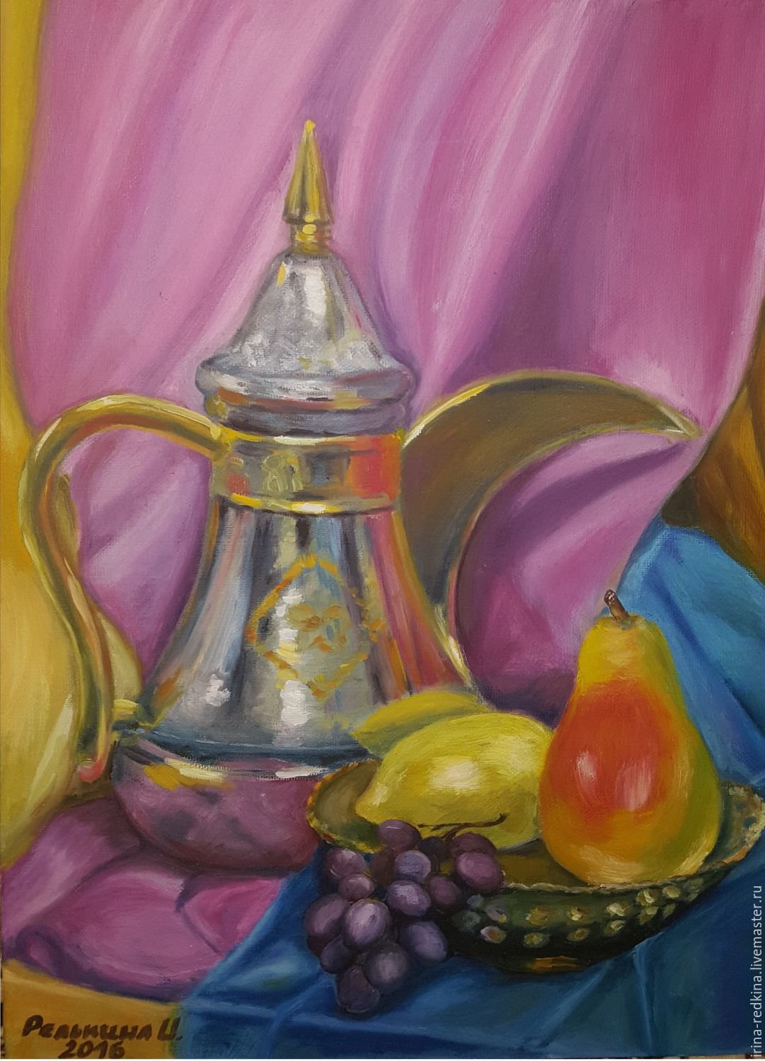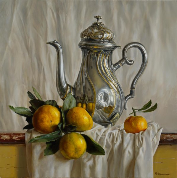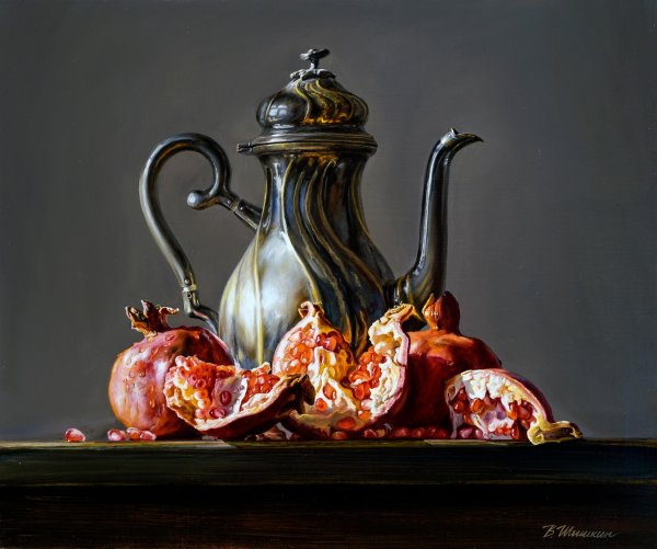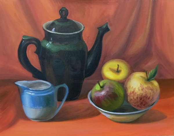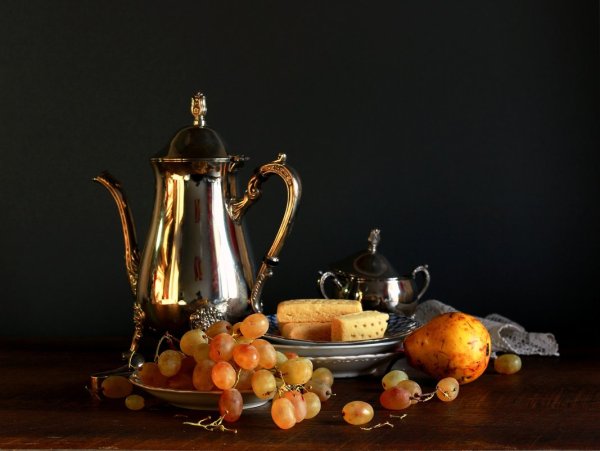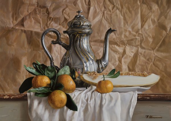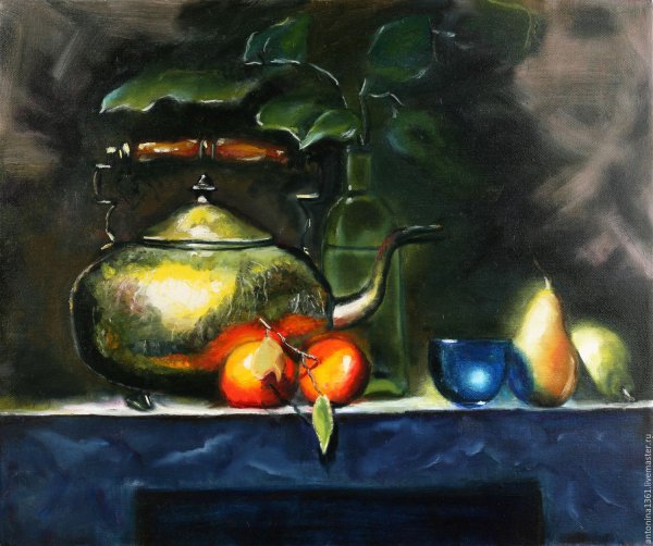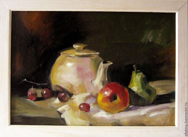 Наше изящное и утонченное произведение искусства - натюрморт с чайником и фруктами - приглашает вас насладиться богатством цветов, форм и текстур. В этой композиции простота и элегантность становятся единым целым, создавая гармоничное сочетание между оттенками ярких фруктов и глубоким матовым металлом чайника. Очаровательные детали, такие как капли росы на спелых ягодах и листьях, позволяют ощутить свежесть и живость сцены. Наш натюрморт с чайником и фруктами будет прекрасным дополнением к вашему интерьеру, принося в него атмосферу тепла и красоты.