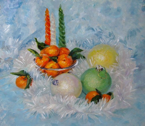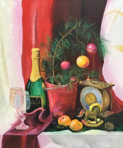 В новогодний натюрморт, созданный с любовью и творческим подходом, вплетены все цвета радуги. Яркие и насыщенные оттенки красного, оранжевого, желтого, зеленого, голубого и фиолетового прекрасно сочетаются друг с другом, создавая великолепный праздничный образ. Эти цвета наполняют атмосферу комнаты теплом и радостью, придавая ей особую энергию и магию. Каждый цвет символизирует свои чувства и эмоции: красный - страсть и силу, оранжевый - радость и оптимизм, желтый - солнечное сияние и удачу, зеленый - свежесть и рост, голубой - спокойствие и гармонию, а фиолетовый - таинственность и мечты. Все эти цвета воплощают в себе дух новогоднего волшебства и делают натюрморт неотразимым и привлекательным для глаз.