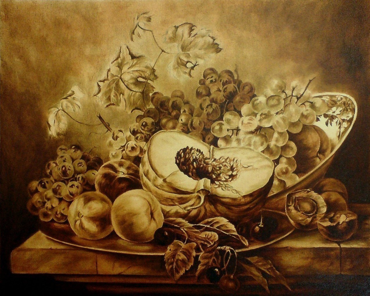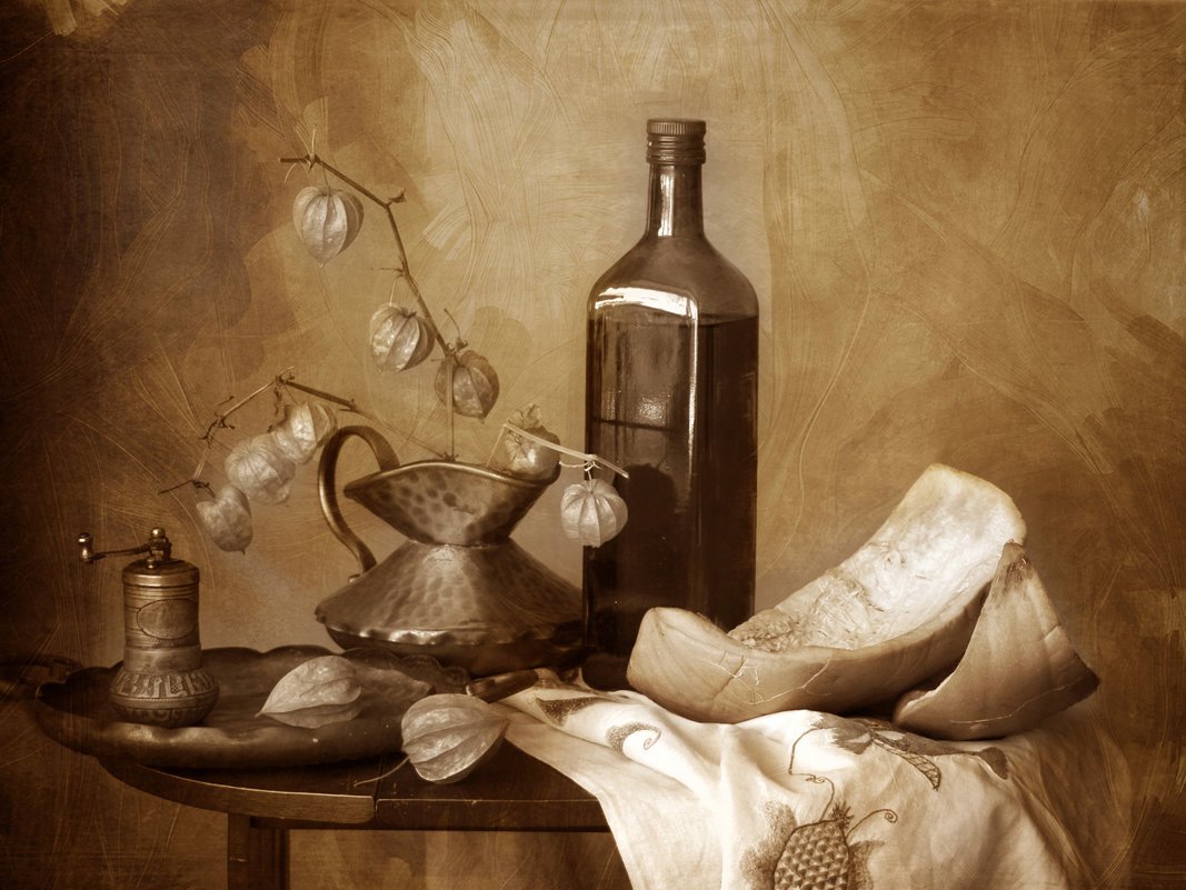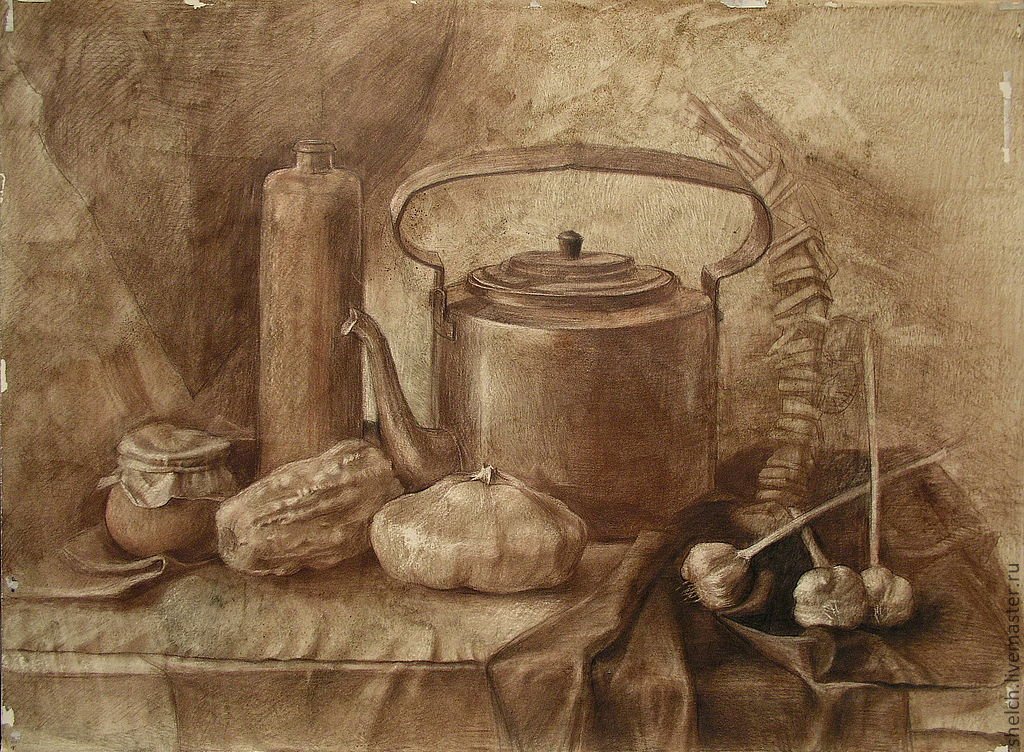 Натюрморт сепия - это произведение искусства, которое захватывает взгляд своей уникальной атмосферой и стилистикой. Он создан в специальной технике, придающей изображению оттенки теплых коричневых оттенков, напоминающих старинные фотографии. В этом натюрморте прекрасно сочетаются различные предметы: фрукты, цветы, посуда и другие элементы, расставленные с таким мастерством, что создается ощущение полной гармонии и баланса. Натюрморт сепия - это не только красивая картинка, но и способ передать эмоции и настроение, вызвать ностальгию по прошлым временам и погрузиться в атмосферу умиротворения и тепла. Это идеальное решение для интерьера, которое добавит особый шарм и элегантность любому помещению.