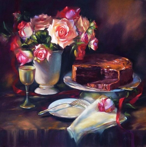 Натюрморт с тортом - это великолепное произведение искусства, которое сочетает в себе кулинарные изыски и эстетику. Этот натюрморт представляет собой композицию из свежих фруктов, цветов, посуды и, конечно же, прекрасно оформленного торта. Каждый элемент в этом произведении тщательно расположен, чтобы создать гармоничное и привлекательное общее впечатление. Взглянув на такой натюрморт, зритель не только оценит мастерство шеф-повара, который создал этот роскошный торт, но и погрузится в атмосферу изящества и утонченности. Натюрморт с тортом является идеальным декоративным элементом для интерьера дома или ресторана, а также отличным подарком для любителей кулинарных шедевров и искусства в целом.