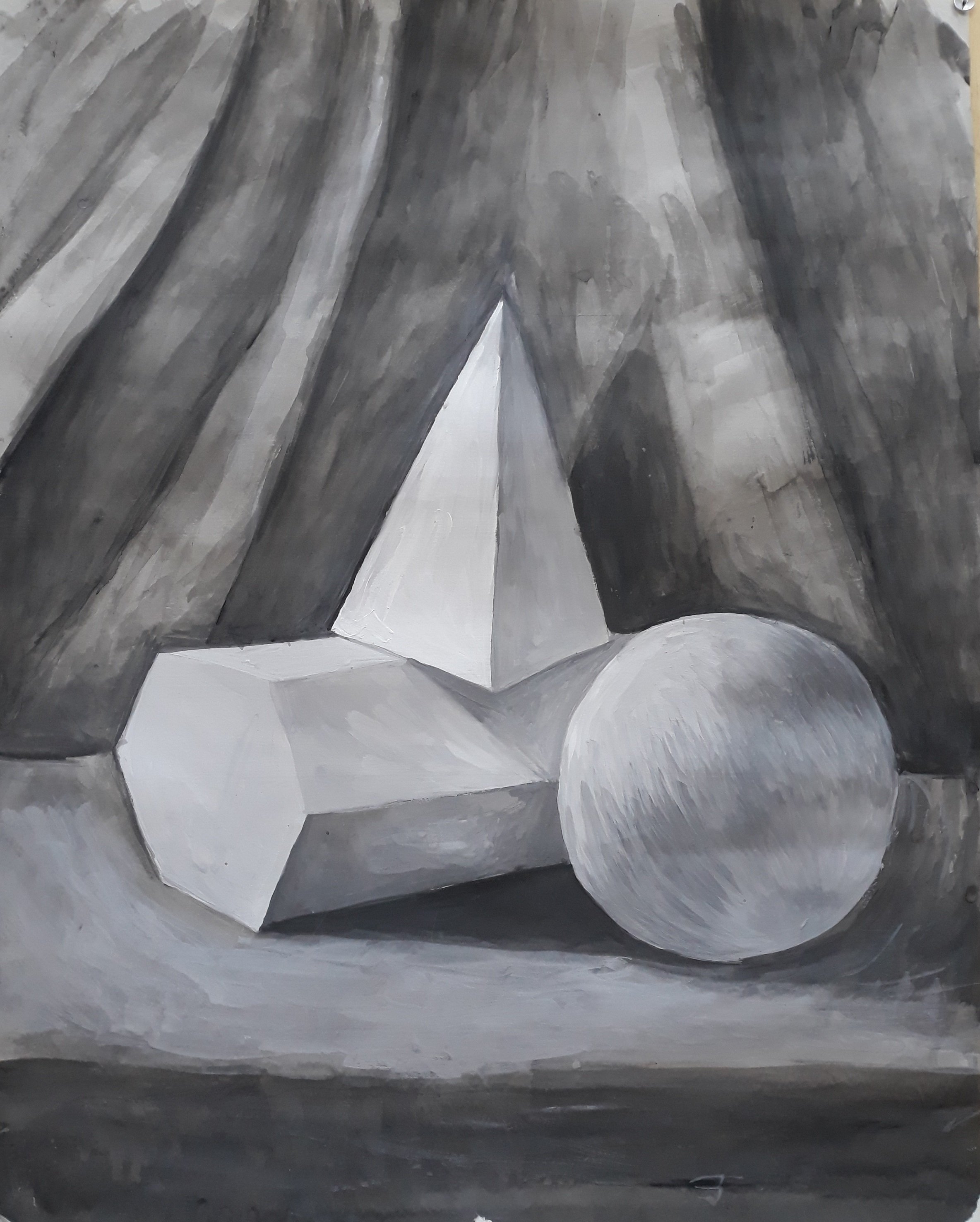 Наш натюрморт из геометрических тел выполнен в стиле гризайль, что придает ему особую элегантность и художественное выражение. В этой композиции мы используем различные геометрические формы, такие как кубы, сферы, конусы и цилиндры, которые мастерски расположены на фоне. Черно-белая палитра отлично подчеркивает каждую деталь, создавая игру света и тени. Этот натюрморт является прекрасным предметом для декорирования интерьера, а также может служить вдохновением для любителей искусства и профессиональных художников.