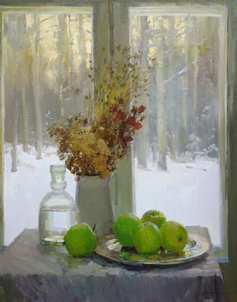 Натюрморт в контражуре на окне - это картина, которая привлекает своей необычной техникой и атмосферой. Контражур - это способ рисования, при котором объекты изображаются темными силуэтами на светлом фоне. В данном случае, на фоне яркого света, черные силуэты предметов создают эффект глубины и позволяют сосредоточиться на их форме и контурах. Натюрморт на окне добавляет еще больше интереса к картине, ведь оно позволяет наблюдать за объектами, которые отражены на стекле окна и создают игру света и тени. Это произведение искусства является не только декоративным элементом для интерьера, но и вызывает интерес и любопытство, заставляя задуматься над смыслом и идеей, которую художник пытается передать.